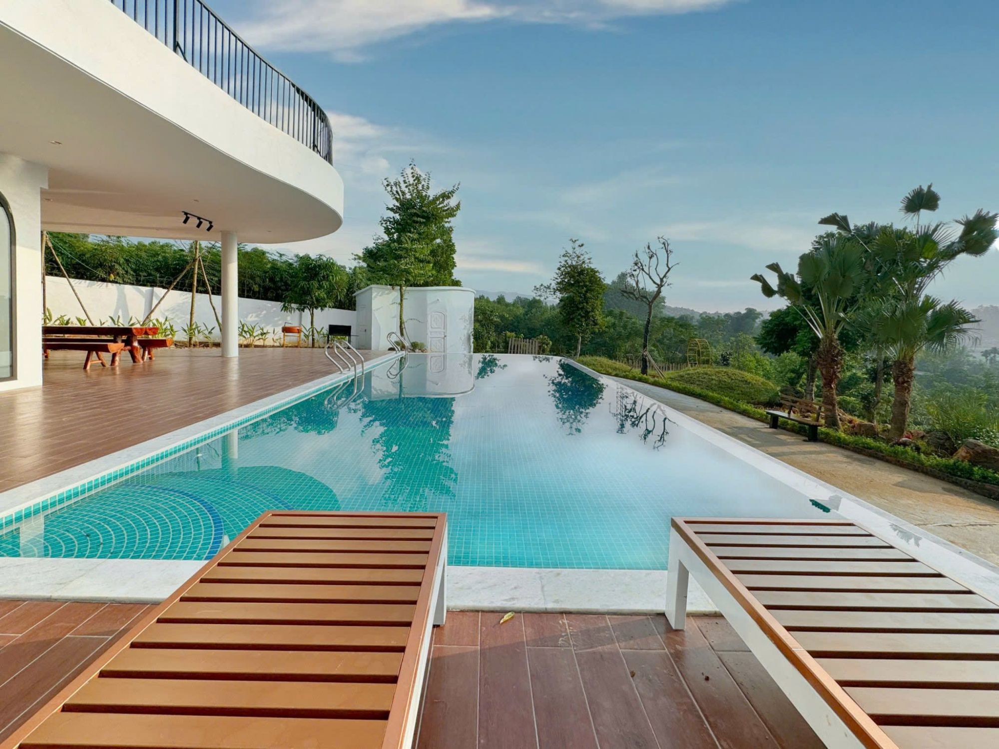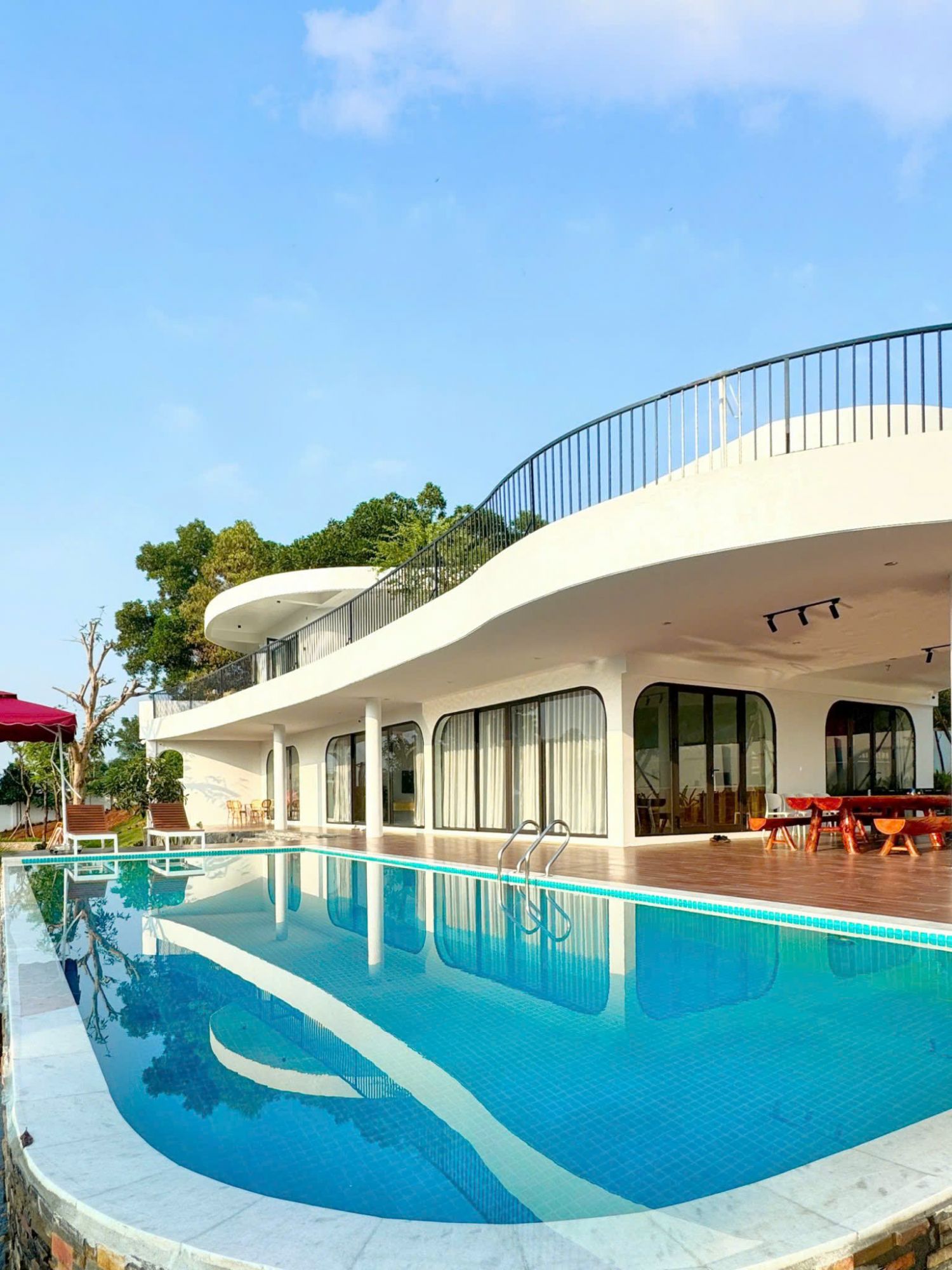 Điểm nhấn nổi bật nhất của villa là bể bơi riêng rộng lên đến 80m², nơi bạn có thể thoải mái bơi lội, chụp hình hoặc tổ chức các hoạt động nước cùng bạn bè. Ngay phía trước bể bơi là khu BBQ ngoài trời với đầy đủ bàn ghế lớn – lý tưởng để tổ chức tiệc nướng chill vào buổi tối.