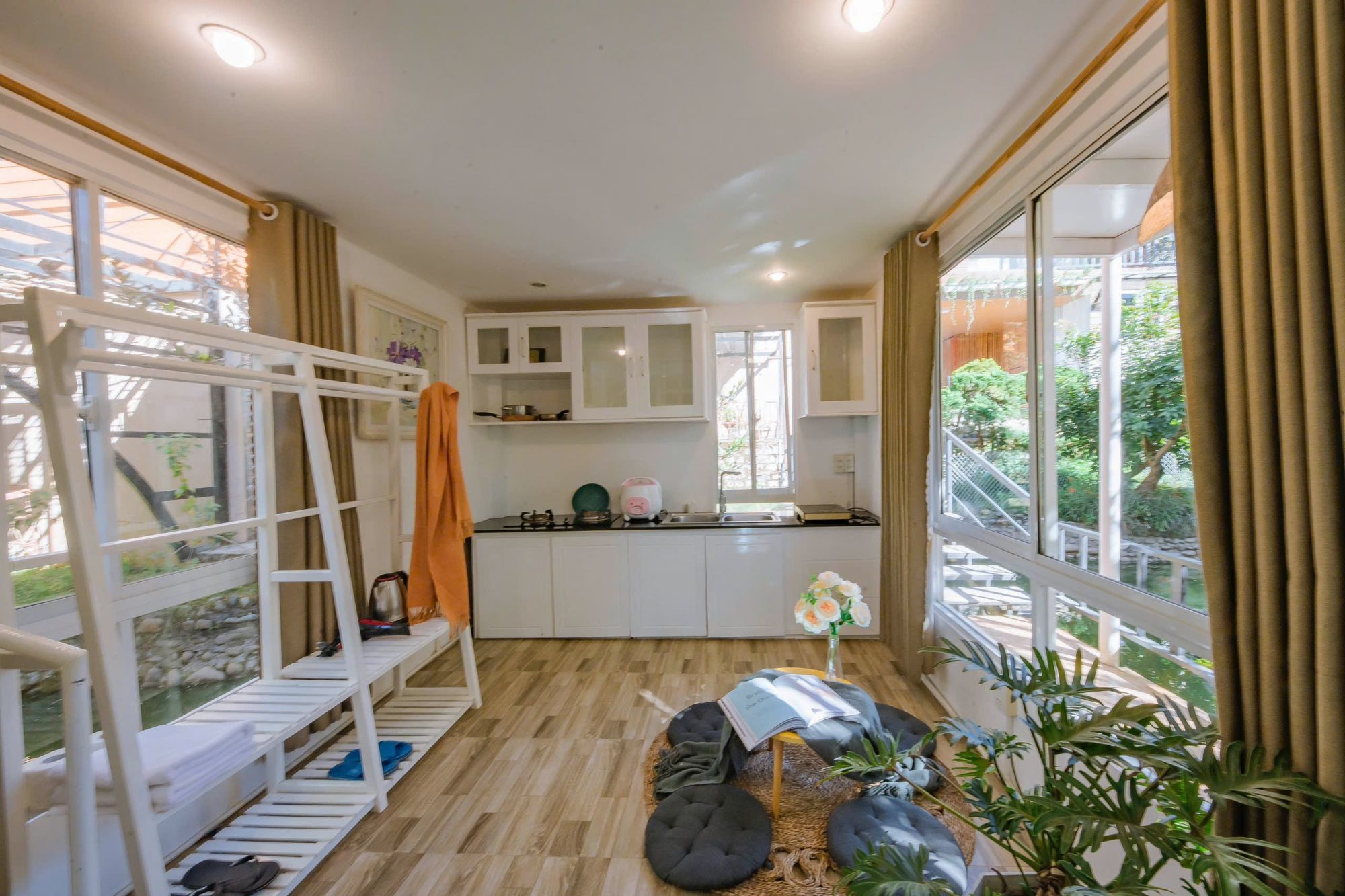 Căn gồm 1 phòng ngủ đơn với nhà vệ sinh khép kín, tiêu chuẩn dành cho 2 người. Không gian phòng nhỏ gọn nhưng thoáng đãng, sạch sẽ và đầy đủ tiện nghi như máy nước nóng, máy sấy tóc, dầu gội, sữa tắm, bàn chải… đáp ứng trọn vẹn nhu cầu của những chuyến nghỉ dưỡng ngắn ngày. Với khách phát sinh, homestay hỗ trợ kê nệm cùng phụ thu hợp lý, tạo sự linh hoạt cho các nhóm nhỏ cần thêm không gian nghỉ.