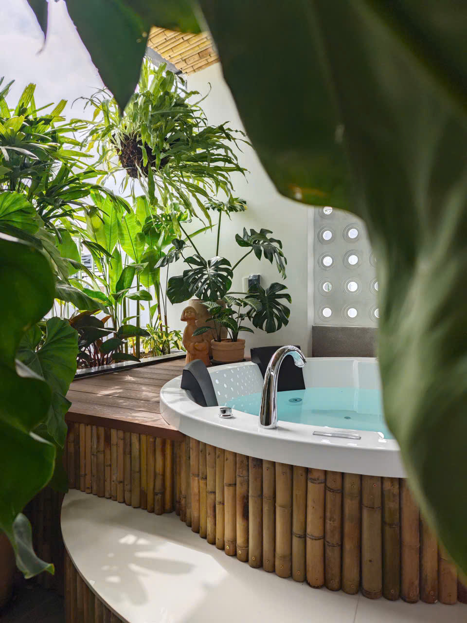 Bếp được trang bị đầy đủ dụng cụ và mở ra sân vườn xanh mát, mang lại cảm giác gần gũi thiên nhiên. Điểm nhấn đặc biệt là tầng thượng với bể sục jacuzzi giữa khu vườn phong cách tropical và khu vực BBQ lý tưởng cho những buổi tụ họp ấm cúng. House còn có phòng giặt sấy riêng, loa Bluetooth và 2 xe đạp để dạo chơi quanh khu vực. Tọa lạc trong khu dân cư yên tĩnh, GomiHouse – Cozy nằm gần siêu thị Lotte, Công viên Châu Á, rạp phim Mega, và chỉ cách biển cùng sân bay khoảng 4–5 km, thuận tiện cho mọi lịch trình di chuyển.