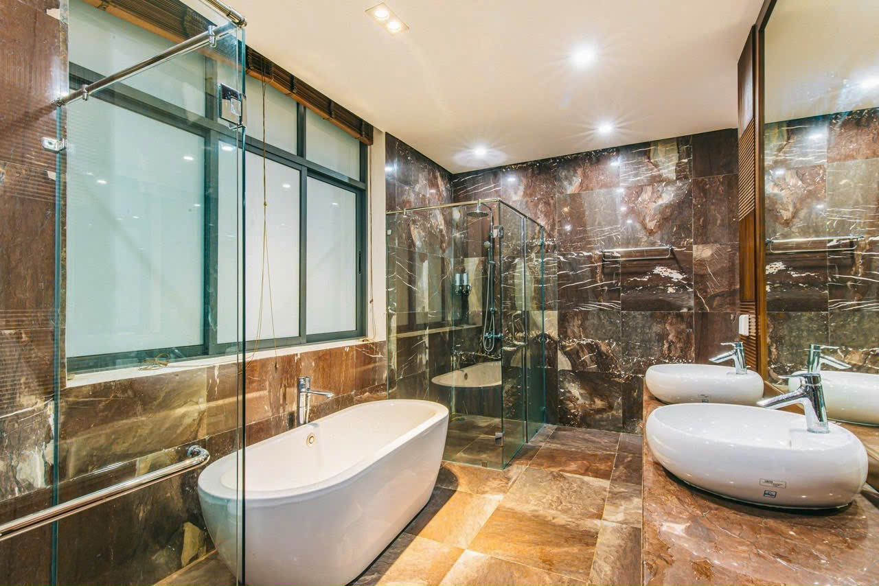 Một trong những điểm cộng lớn nhất của Grand Villa BT33.01 chính là bể bơi riêng ngoài trời rộng tới 60m². Nơi đây lý tưởng để cả gia đình đắm mình trong làn nước mát lạnh, phơi nắng nhẹ nhàng hay tổ chức những buổi pool party sôi động bên ly cocktail và tiếng nhạc du dương.