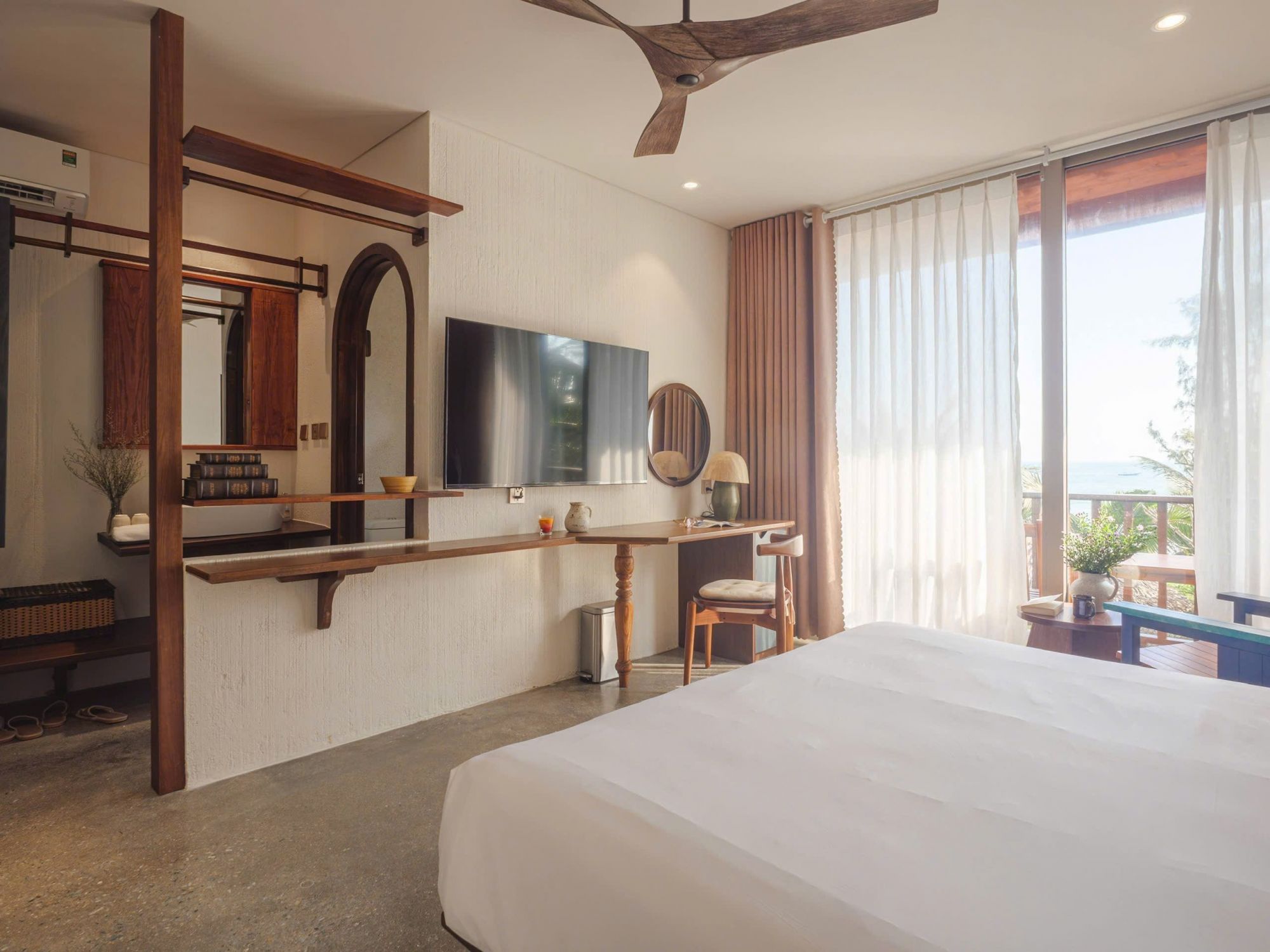 Điểm nhấn nổi bật là bồn tắm view biển ngay trong phòng – góc check-in cực chill, vừa thư giãn vừa ngắm trọn cảnh biển.