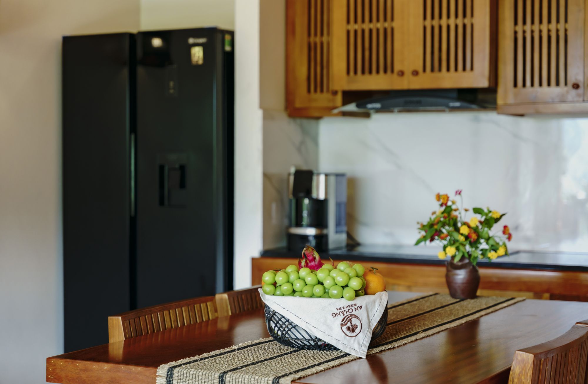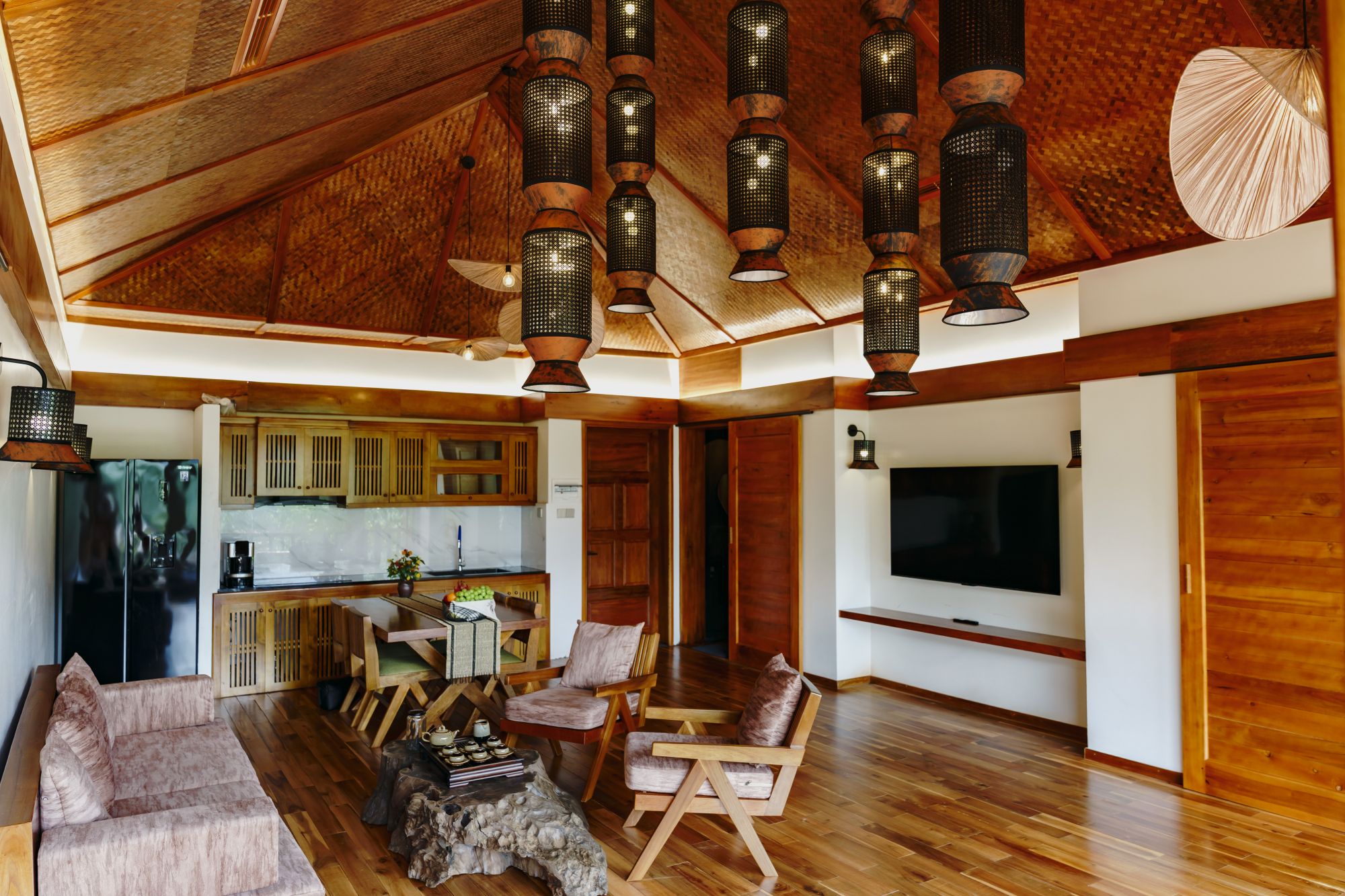 Sự tinh tế thể hiện trong cách bài trí và ánh sáng tự nhiên len vào qua các ô cửa, giúp không gian sáng thoáng và thoải mái hơn, phù hợp cho cả kỳ nghỉ dưỡng dài ngày.
