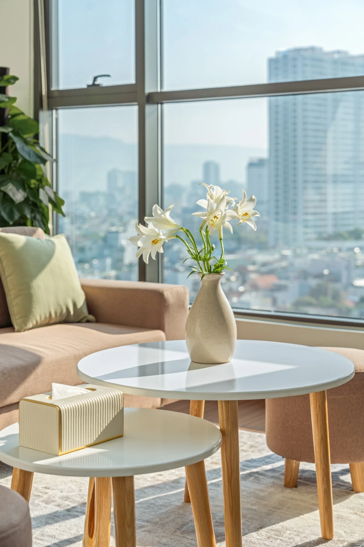 Phòng khách tràn ánh sáng với nội thất tinh tế và trang bị chất lượng