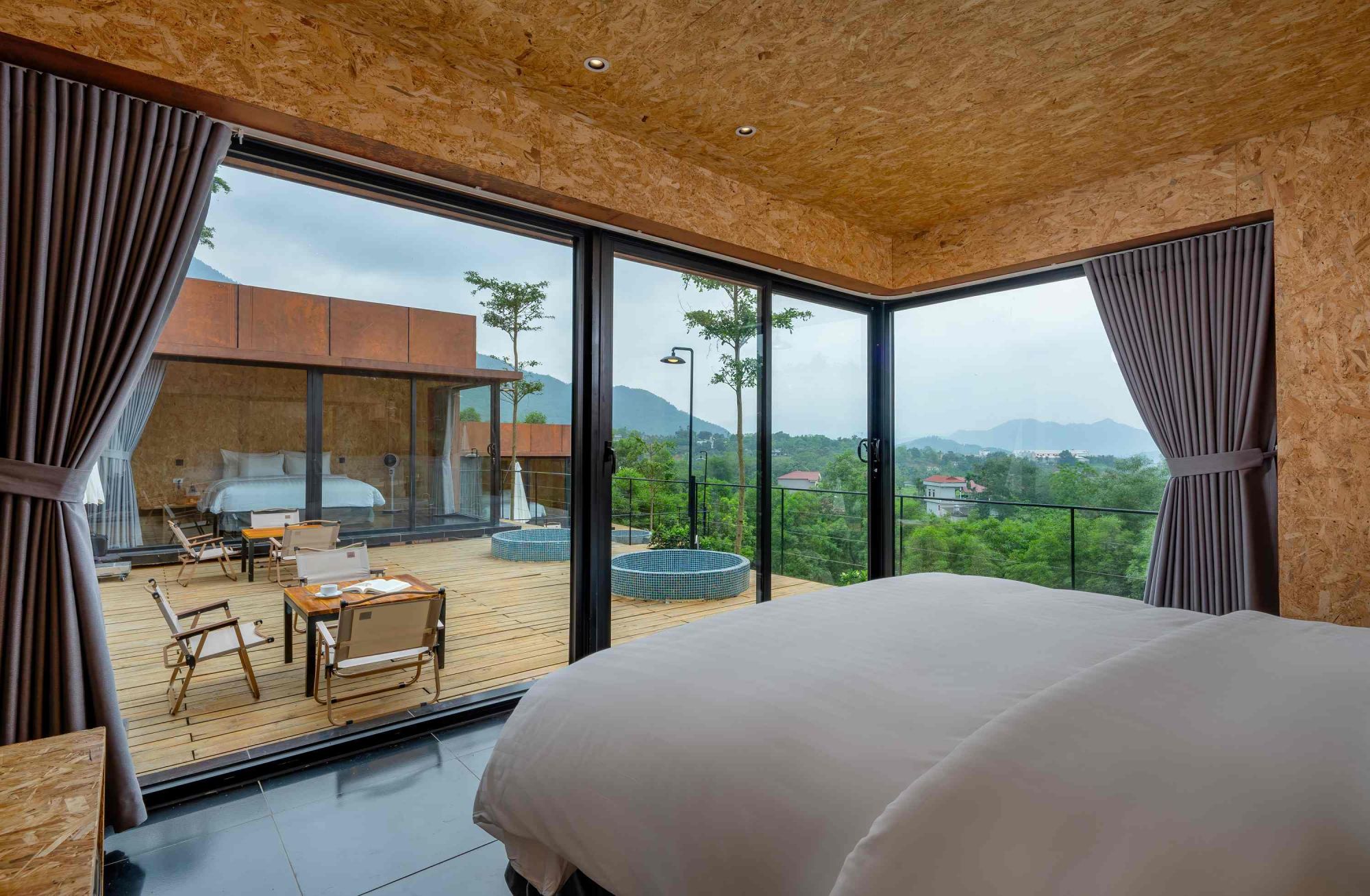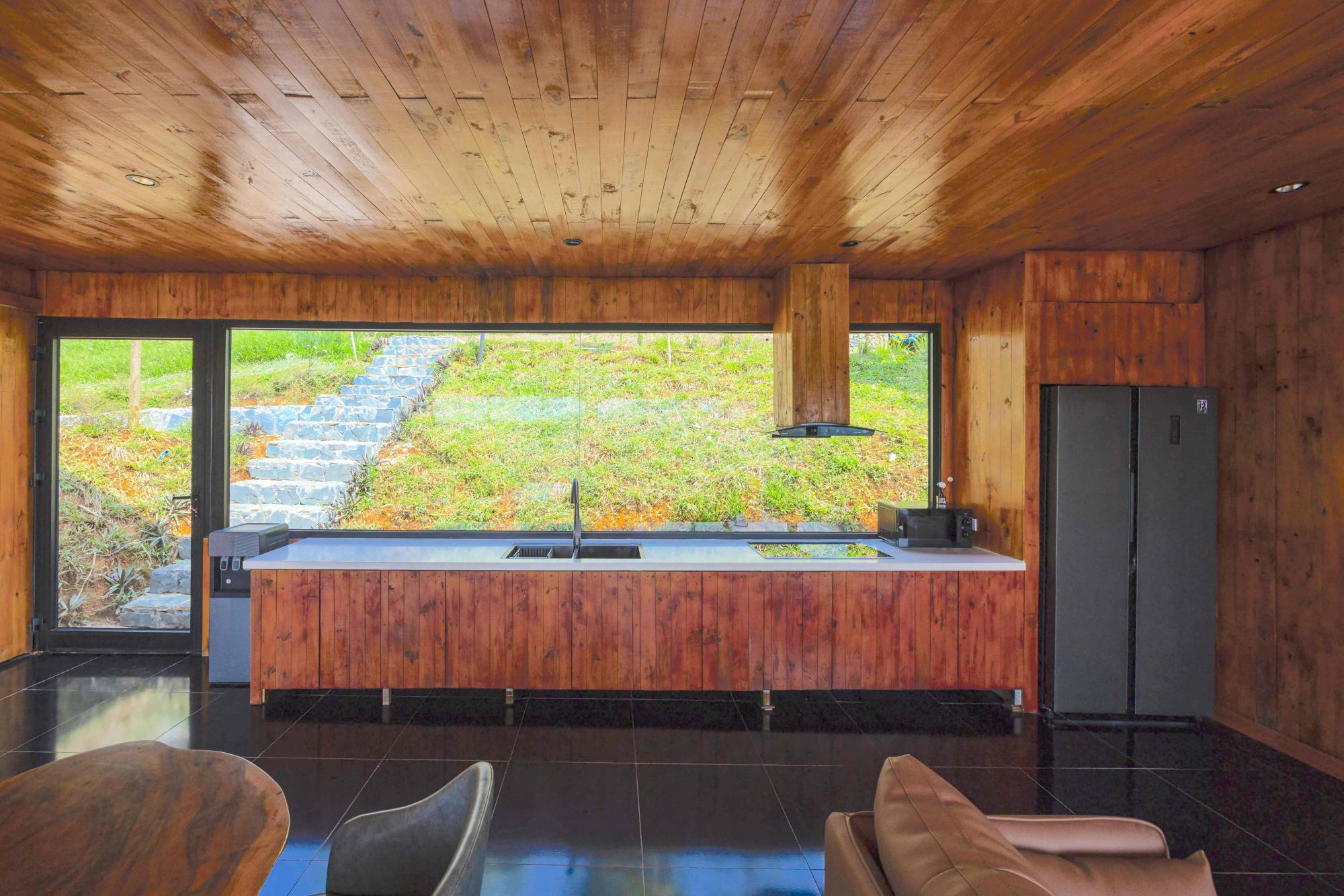 Giữa khung cảnh rừng núi Bình Yên – Thạch Thất, Hillside Villa mang đến trải nghiệm nghỉ dưỡng trọn vẹn với sự kết hợp hài hòa giữa tiện nghi hiện đại và không gian thiên nhiên rộng mở. Từ phòng sinh hoạt chung với sofa, bàn ăn dài cho đến bếp hiện đại đầy đủ lò vi sóng, bếp từ và tủ lạnh side by side, mọi chi tiết đều được chăm chút để đáp ứng cả nhu cầu thư giãn lẫn tổ chức tiệc tùng.