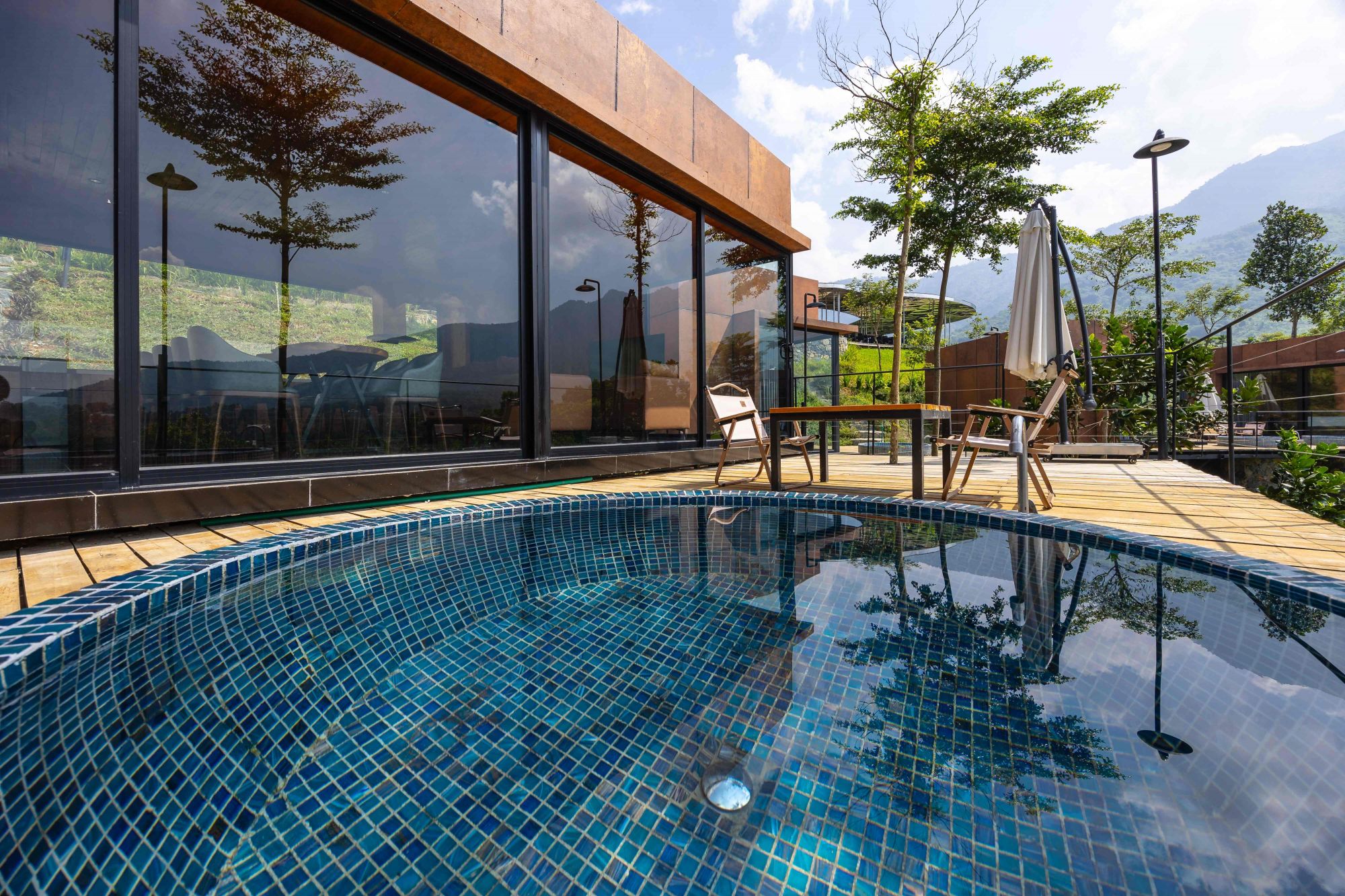Một trong những điểm nổi bật của Hillside Villa chính là hồ bơi vô cực uốn lượn trên sườn đồi, nơi phóng tầm mắt ra toàn cảnh núi rừng hùng vĩ. Với nguồn nước sạch đạt chuẩn uống được, không hóa chất, hồ bơi không chỉ an toàn mà còn mang đến cảm giác thư giãn tuyệt đối, lý tưởng cho các buổi pool party sôi động. Khu sân vườn, sân sự kiện và khu BBQ trên đỉnh đồi mở ra vô vàn trải nghiệm gắn kết.