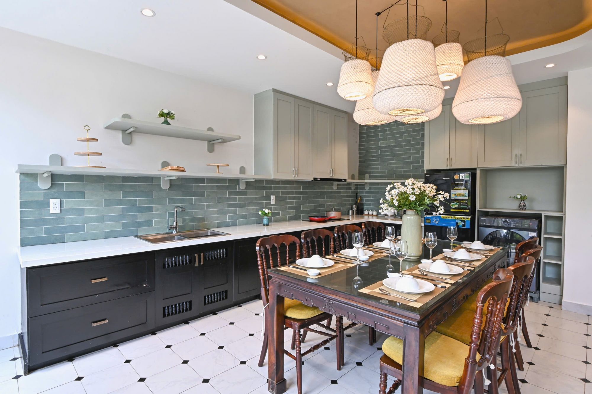 Khu bếp được trang bị đầy đủ thiết bị như bếp từ, lò nướng và khu BBQ ngoài trời, thuận tiện cho những buổi tiệc nhỏ. Ngoài ra còn có máy giặt, máy sấy, dịch vụ dọn phòng theo yêu cầu và các tiện ích giải trí như Netflix.