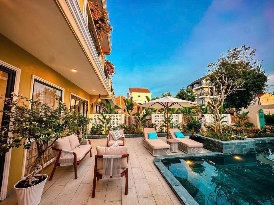 Một điểm nhấn đặc biệt của Hometown Retreat Villa Hội An chính là hồ bơi riêng nằm giữa khu vườn xanh mát. Không gian này mang lại cảm giác thư giãn nhẹ nhàng, nơi mọi người có thể tận hưởng làn nước mát hoặc đơn giản là nghỉ ngơi giữa thiên nhiên.