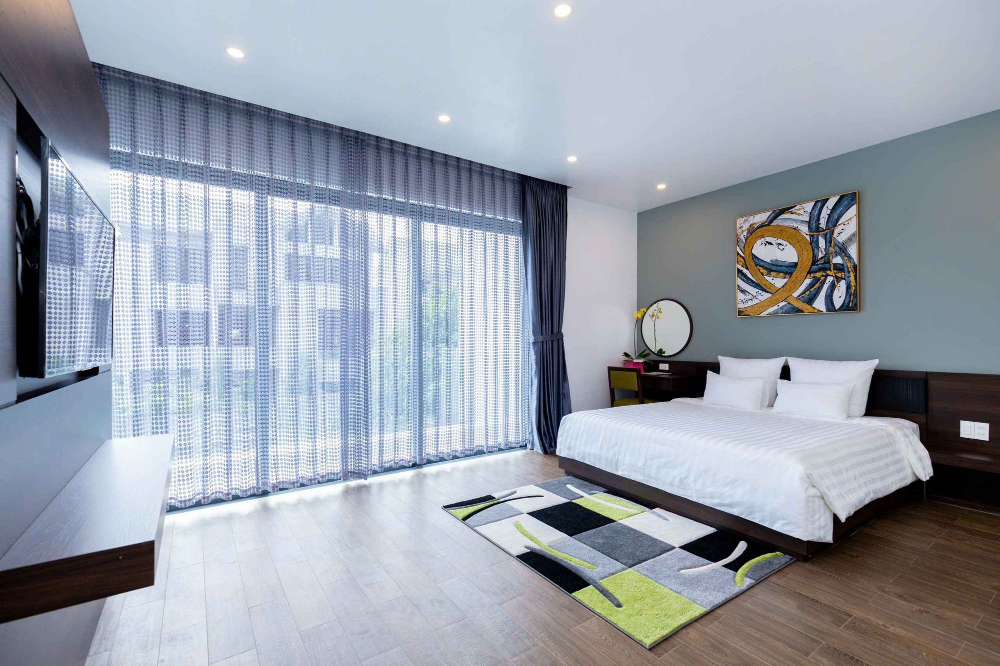 5 phòng ngủ tiện nghi: Biệt thự có 7 phòng ngủ, tất cả đều có ban công riêng, đảm bảo sự riêng tư và thoải mái cho cả đoàn.