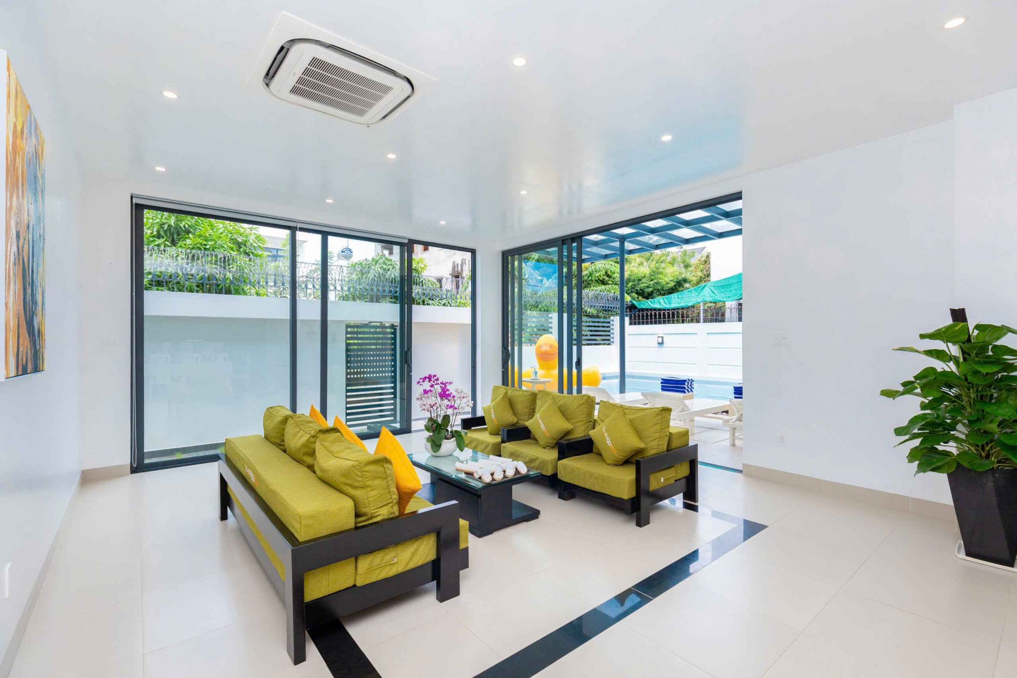 Không gian rộng rãi: Villa có không gian mở, phòng khách và phòng tắm đều hướng ra hồ bơi, tạo cảm giác thoáng đãng và thư thái.