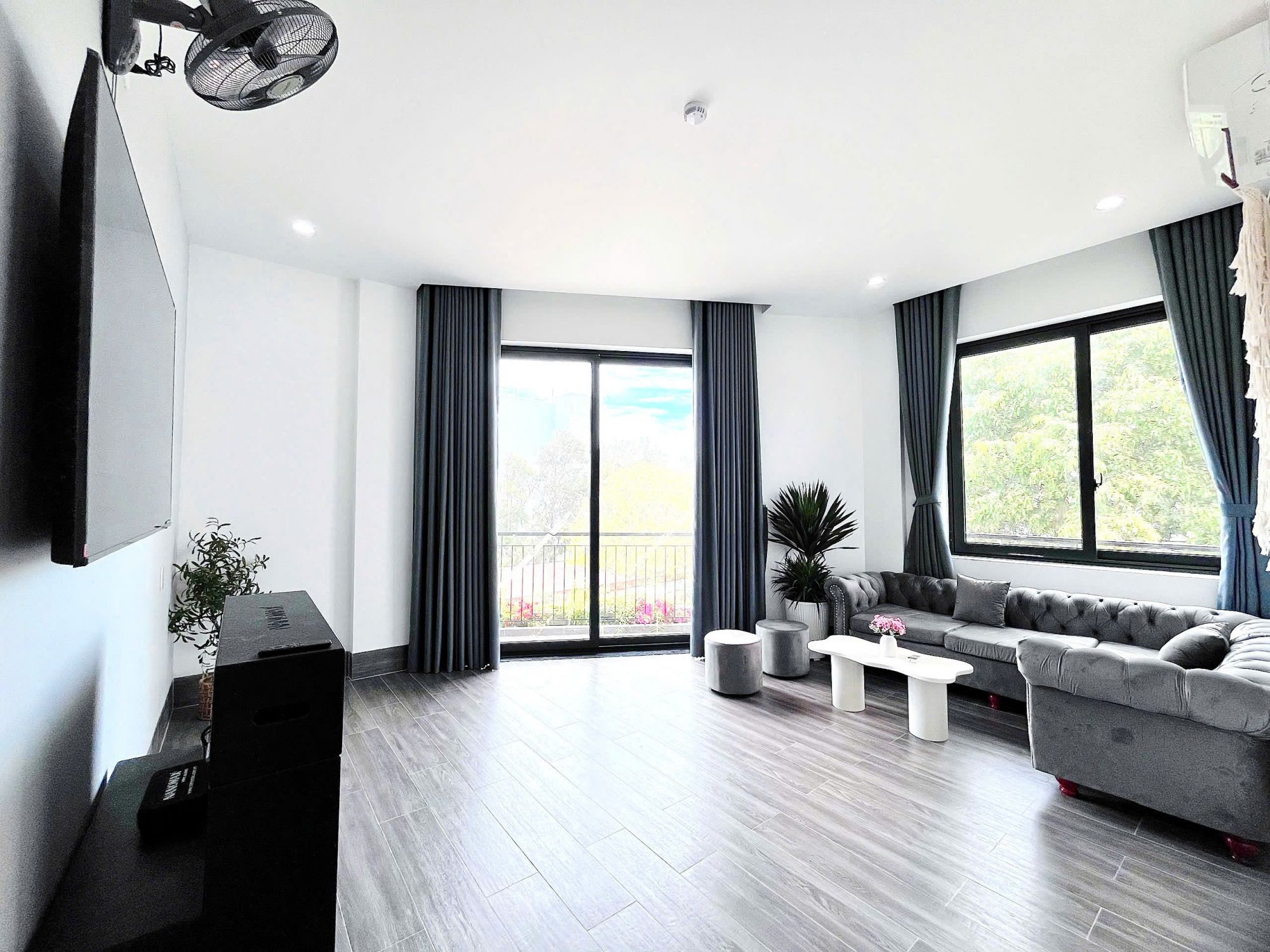 Ngay từ những bước chân đầu tiên, Kito Villa - 1A Hồ Quý Ly gây ấn tượng bởi tổng thể kiến trúc sáng, sạch và có chiều sâu. Gam màu trung tính kết hợp cùng vật liệu gỗ, đá tạo nên cảm giác hài hòa, không nặng nề. Hệ cửa kính lớn và trần cao giúp ánh sáng tự nhiên lan tỏa khắp villa, khiến không gian luôn thông thoáng và dễ chịu suốt cả ngày.