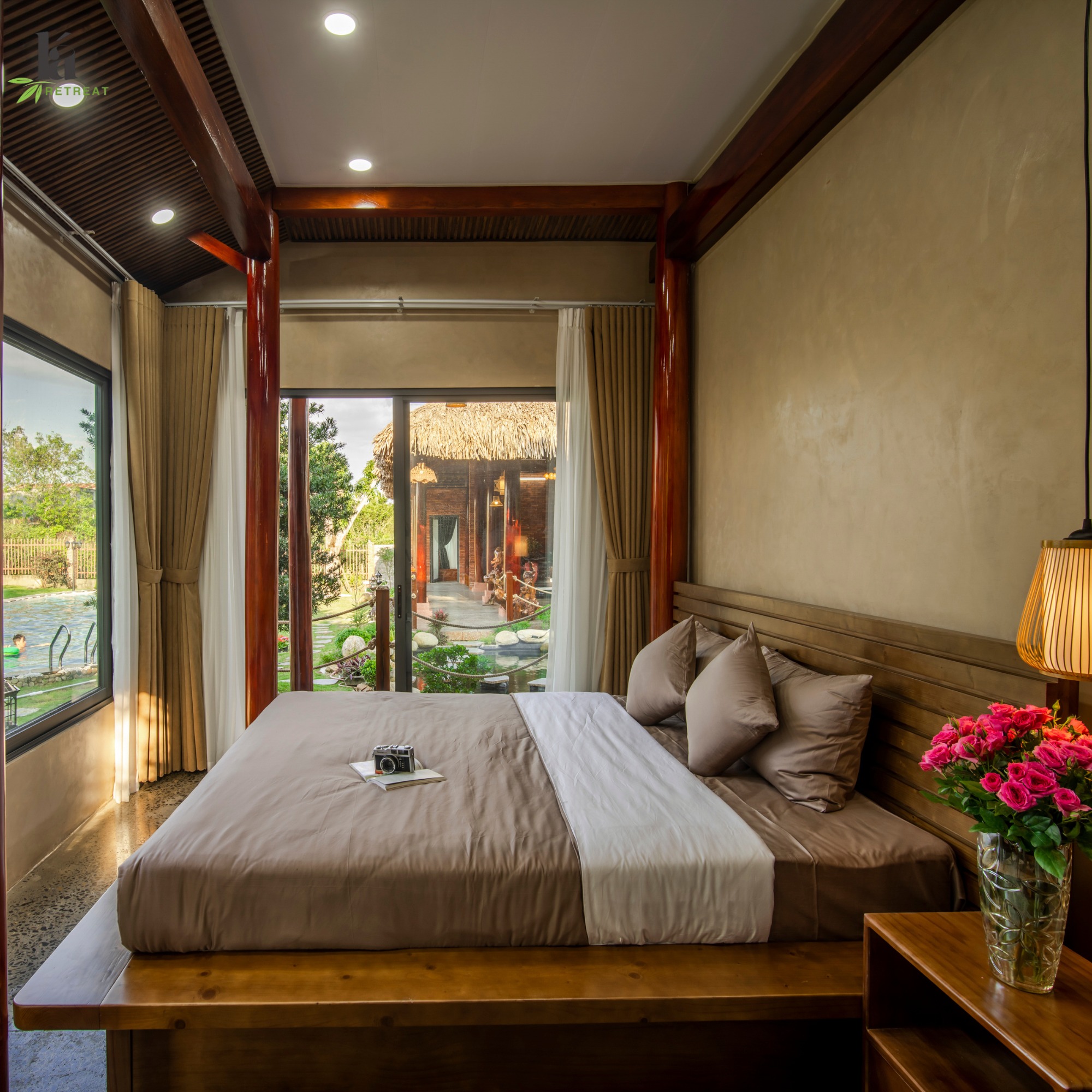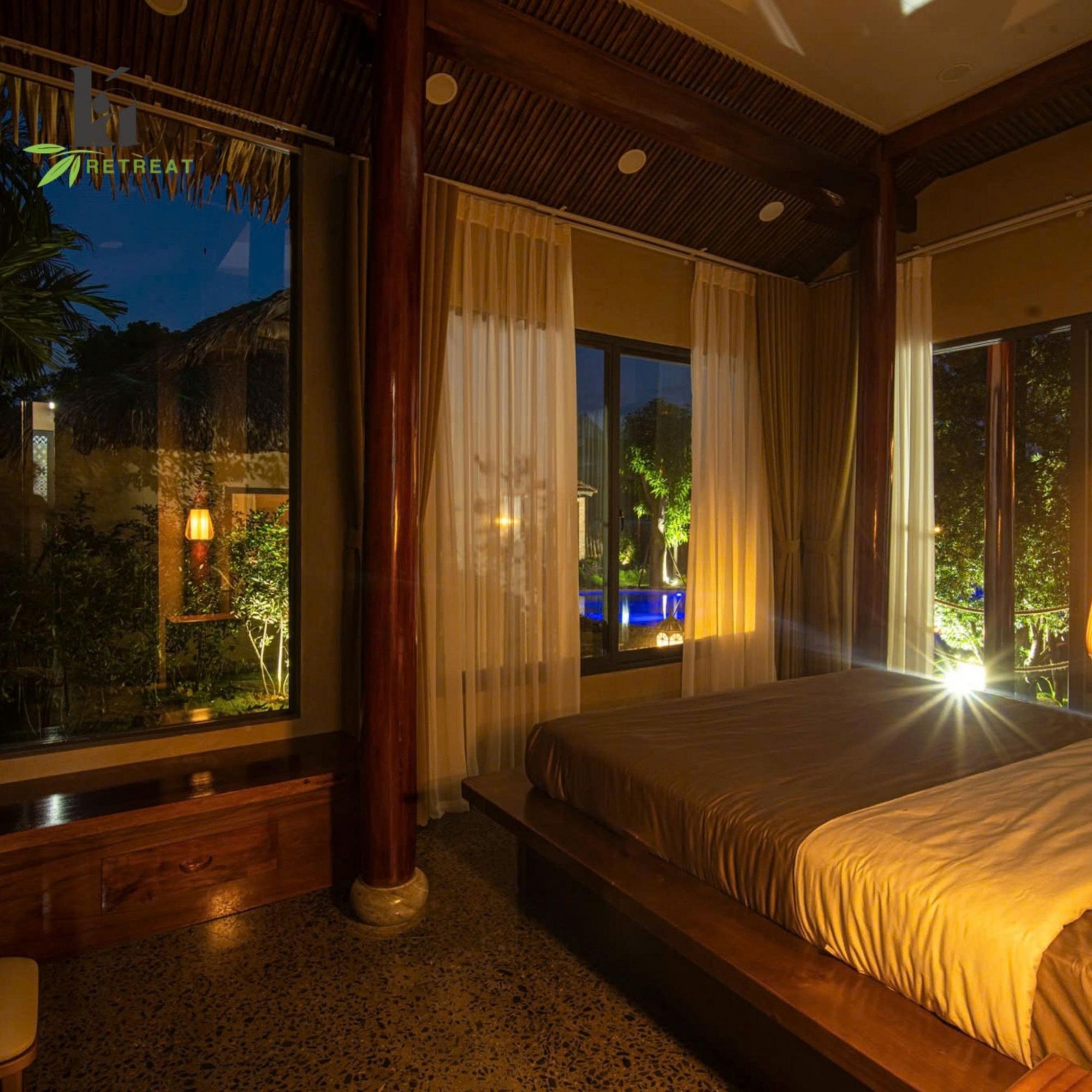 Các phòng tại Lá Retreat mang tinh thần tối giản, tập trung vào sự thoải mái và cảm giác thở sâu mỗi khi bước vào. Chất liệu tự nhiên như gỗ, mây, vải thô được kết hợp hài hòa, đồng thời giữ được tính thẩm mỹ nhẹ nhàng. Ánh sáng trong phòng được điều tiết hợp lý, giúp buổi sáng trở nên dịu dàng và buổi tối trở nên ấm áp. Sự yên tĩnh là điểm cộng lớn, tạo nên một không gian lý tưởng cho những ai cần sự cân bằng hoặc tìm một nơi để nạp lại năng lượng.