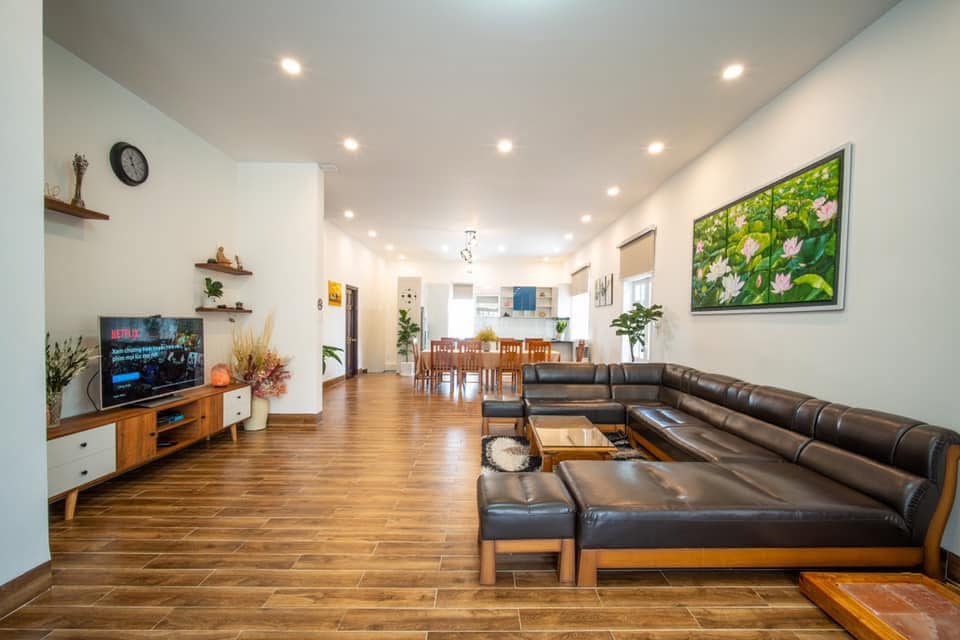 Ngoài các phòng nghỉ, villa còn có phòng khách và khu bếp đầy đủ dụng cụ nấu nướng, tạo điều kiện cho những bữa ăn quây quần. Sân vườn rộng rãi, thoáng mát là nơi lý tưởng để tổ chức tiệc BBQ hoặc đơn giản là ngồi thư giãn, nhâm nhi ly cà phê trong buổi sớm se lạnh.