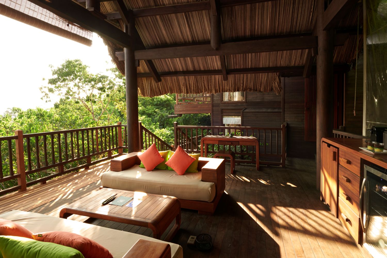Các biệt thự tại đây được thiết kế tinh tế, mở ra tầm nhìn tuyệt đẹp ra biển. Mỗi căn đều trang bị TV màn hình phẳng truyền hình cáp, ổ cắm iPod, máy pha cà phê cùng nhiều tiện nghi hiện đại. Không gian phòng tắm bán ngoài trời và khu vực vòi sen riêng mang lại cảm giác thư giãn gần gũi với thiên nhiên.