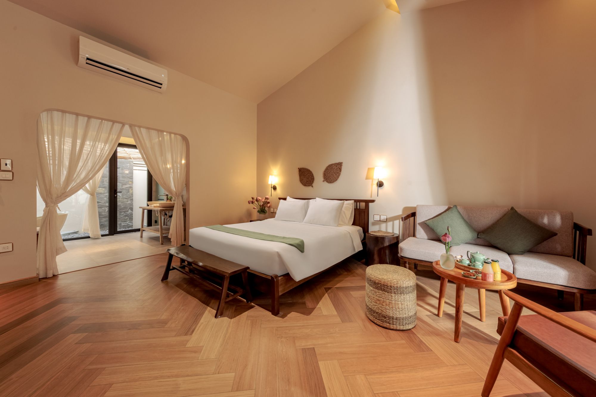 Không gian tại Lasen Village được thiết kế hài hòa giữa nét mộc mạc của làng quê Bắc Bộ và phong cách nghỉ dưỡng hiện đại. Từng góc nhỏ đều được chăm chút kỹ lưỡng, tạo cảm giác ấm cúng, gần gũi nhưng vẫn đảm bảo sự riêng tư và thoải mái cho du khách. Các phòng nghỉ thoáng đãng, ngập tràn ánh sáng tự nhiên, là nơi lý tưởng để bạn tận hưởng những giây phút thư giãn trọn vẹn sau một ngày khám phá Ninh Bình.