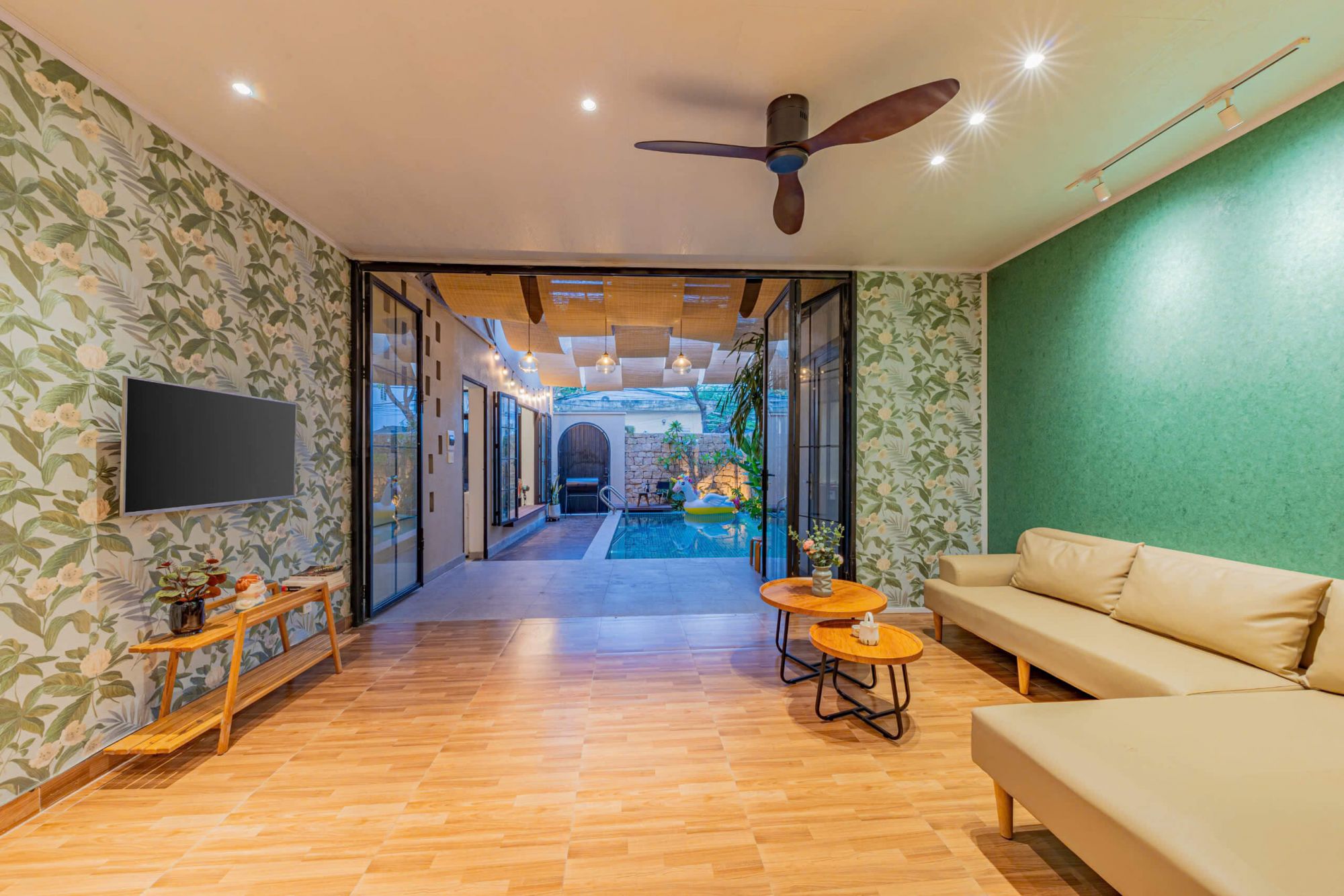 Leeka Villa có nhiều không gian sinh hoạt chung khác nhau, từ phòng khách sang trọng, phòng bếp hiện đại đến sân thượng rộng rãi với tầm nhìn bao trọn cầu Trần Thị Lý, sông Hàn và toàn cảnh thành phố. Bạn có thể tổ chức những bữa tiệc BBQ ngoài trời, những buổi gặp mặt gia đình hoặc đơn giản chỉ là thư giãn và ngắm nhìn thành phố từ trên cao.