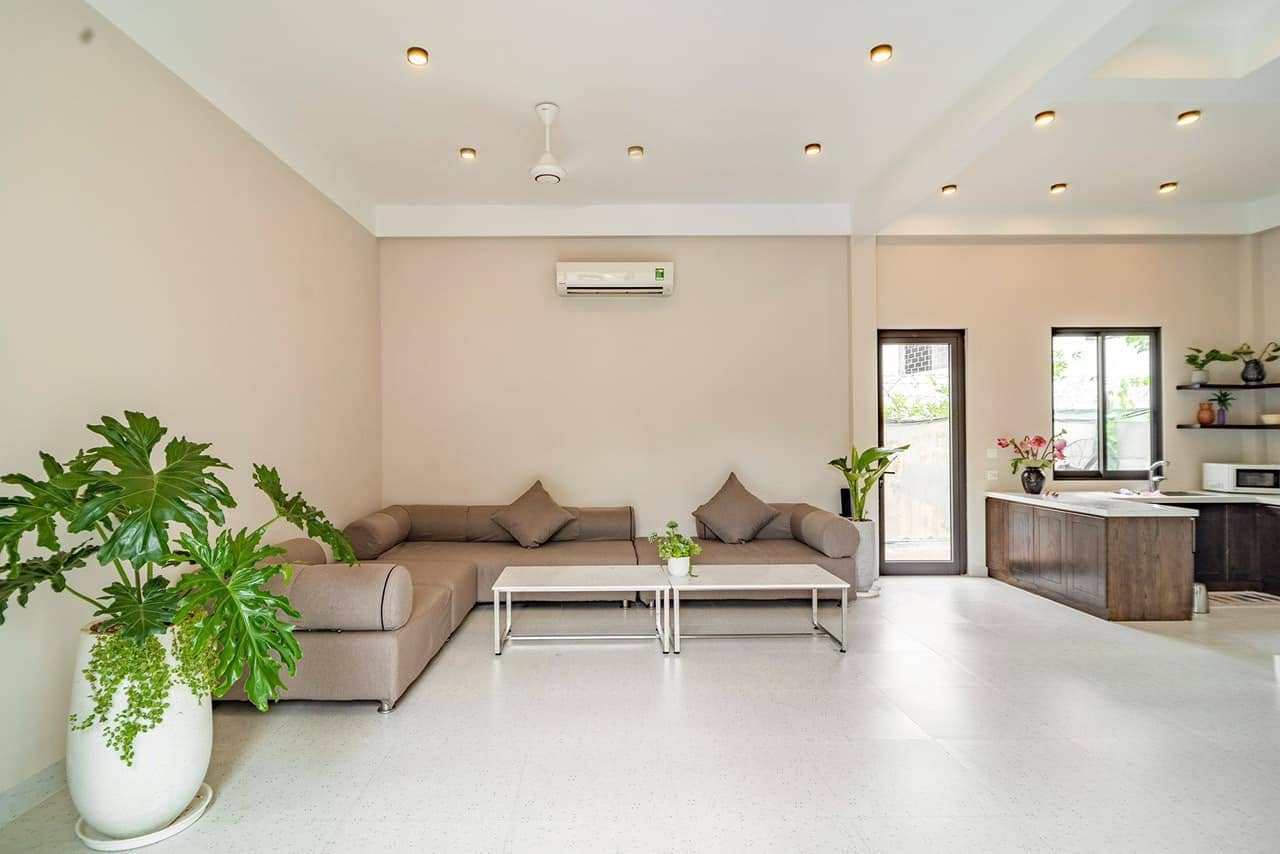 Líu Lo Villa, bao gồm villa chính 120m² và căn nhà phụ 30m², cùng khu sân vườn, bể bơi và không gian tổ chức tiệc ngoài trời, đảm bảo sự thoải mái tối đa.