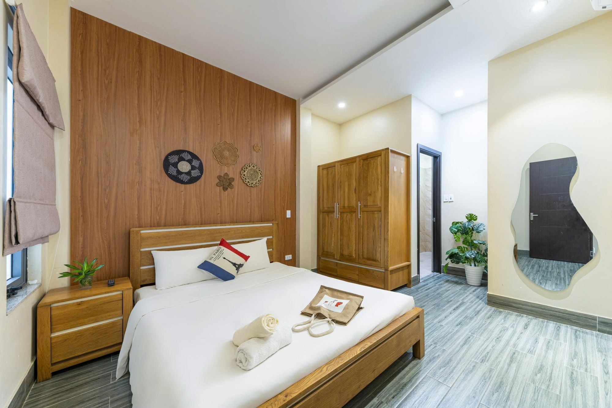 Ẩn mình trong khu vực yên bình gần biển Mỹ An, Lucia Villa mang đến trải nghiệm nghỉ dưỡng riêng tư nhưng vẫn đầy đủ tiện nghi cho nhóm bạn hoặc gia đình đông thành viên. Với 5 phòng ngủ rộng rãi, mỗi phòng đều có giường riêng, villa đáp ứng thoải mái cho đoàn từ 10 người. Thiết kế hiện đại, tông màu tươi sáng kết hợp cùng ánh sáng tự nhiên tạo nên cảm giác thoáng đãng, giúp mọi người dễ dàng tìm lại sự thư giãn sau một ngày khám phá Đà Nẵng.