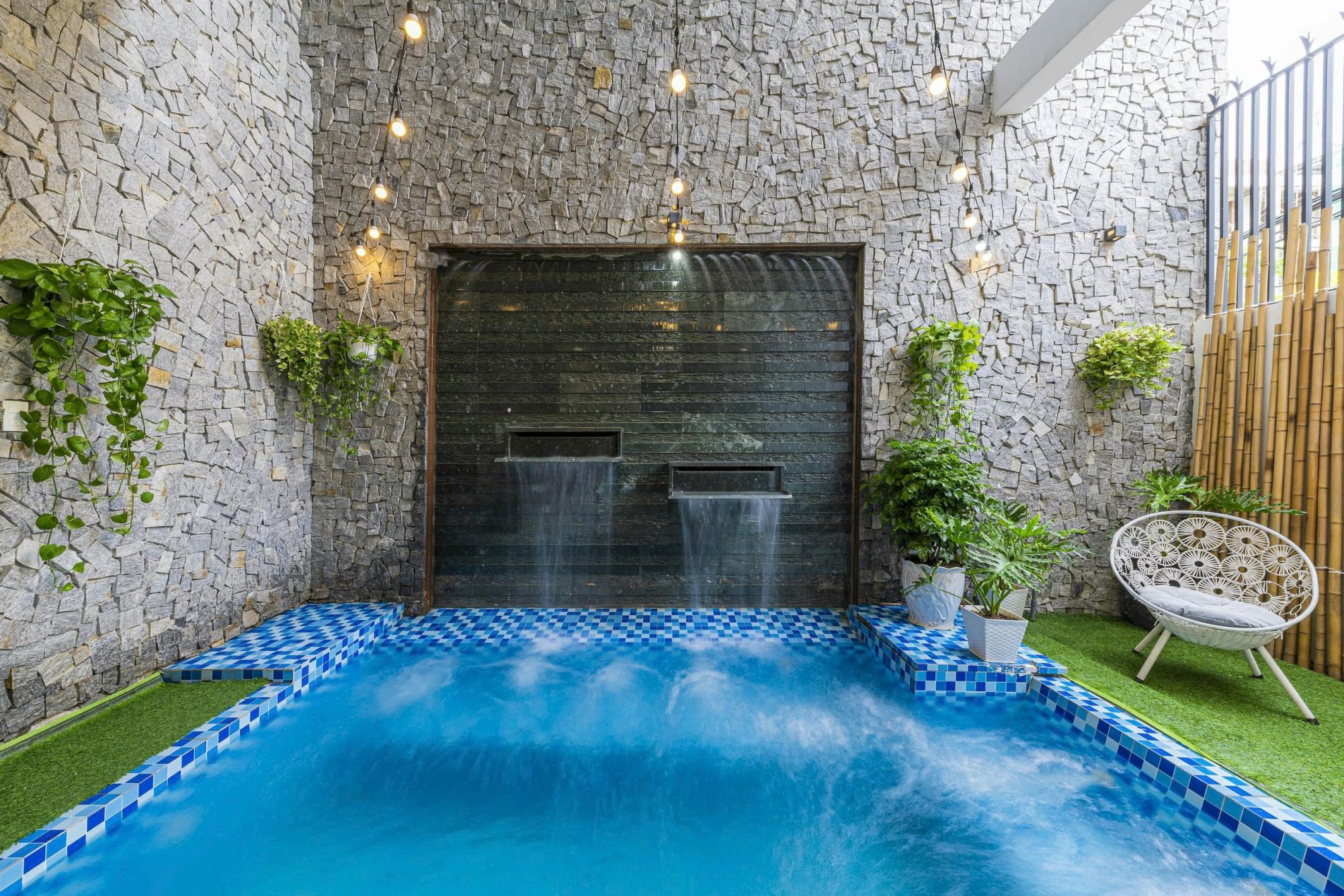 Ngay tại khuôn viên villa là hồ bơi xanh mát cùng jacuzzi sục massage ngoài trời – nơi lý tưởng để ngâm mình trong làn nước mát, thả trôi hết mệt mỏi. Buổi sáng có thể bắt đầu ngày mới bằng vài vòng bơi nhẹ, còn buổi tối, khi ánh đèn lên, hồ bơi trở thành góc chill tuyệt vời để nhâm nhi ly cocktail và trò chuyện cùng bạn bè.