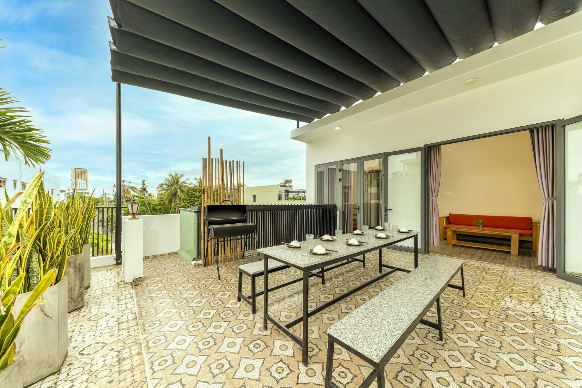 Nếu yêu thích những bữa tiệc quây quần, villa đã chuẩn bị đầy đủ khu vực bếp hiện đại và dụng cụ nấu nướng. Sân thượng rộng rãi là nơi lý tưởng để tổ chức tiệc BBQ ngoài trời – nơi cả nhóm có thể cùng nhau nướng hải sản tươi, vừa ăn vừa ngắm gió biển. Đây chính là khoảng thời gian kết nối tuyệt vời cho những buổi tối đáng nhớ.