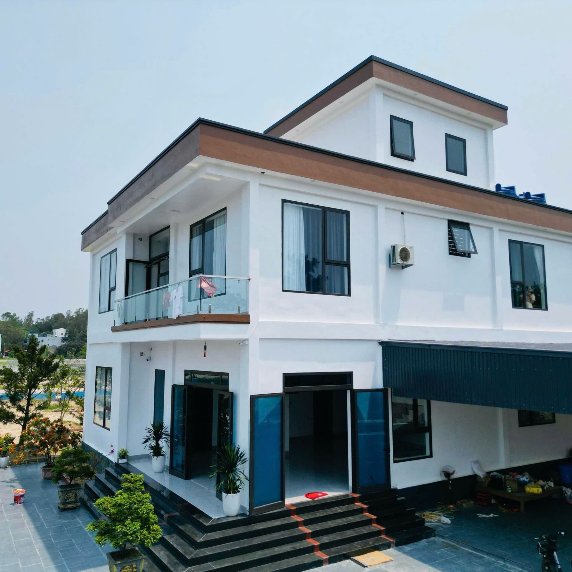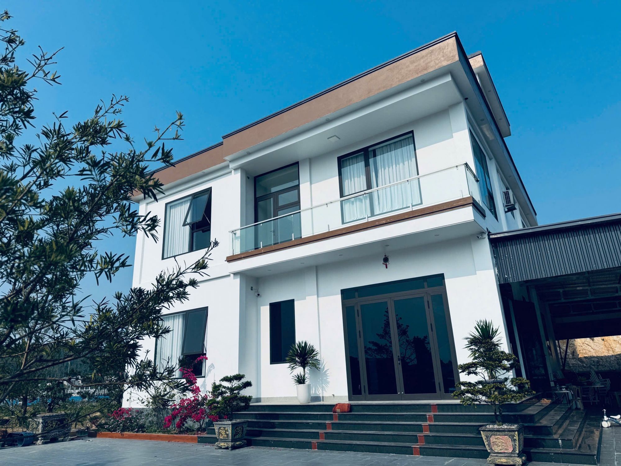 Lương Chi Cô Tô gây ấn tượng ngay từ cái nhìn đầu tiên với kiến trúc hiện đại, tinh tế, tông màu sáng trang nhã, nổi bật giữa không gian xanh mát. Khuôn viên rộng rãi, thoáng đãng, bao quanh bởi cây xanh và hồ nước tạo cảm giác gần gũi với thiên nhiên, rất phù hợp cho những ai muốn “trốn phố” tìm lại sự an yên.