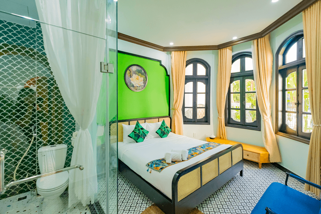 Mây Luxury Beach Villa với diện tích trên 300m², được thiết kế với 7 phòng ngủ, hoàn toàn phù hợp cho các gia đình lớn hoặc nhóm bạn bè lên đến 19 người. Mỗi phòng ngủ đều được trang bị đầy đủ tiện nghi, đảm bảo sự thoải mái và riêng tư cho từng thành viên.