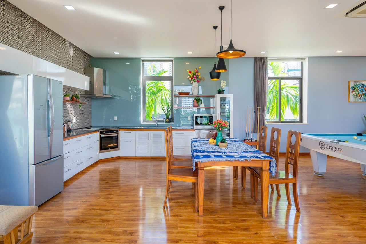 Không chỉ dừng lại ở nghỉ dưỡng, Mây Luxury Villa còn mang đến nhiều hoạt động giải trí thú vị. Du khách có thể thỏa sức với bàn bida giải trí, tận hưởng những phút giây vui vẻ bên bạn bè. Bếp được trang bị đầy đủ dụng cụ và thiết bị hiện đại, giúp việc nấu nướng trở nên dễ dàng và tiện lợi. Ngoài ra, villa còn cho phép sử dụng loa bluetooth công suất nhẹ đến 21h, đủ để tạo không khí sôi động mà vẫn giữ được sự riêng tư và yên tĩnh cần thiết.