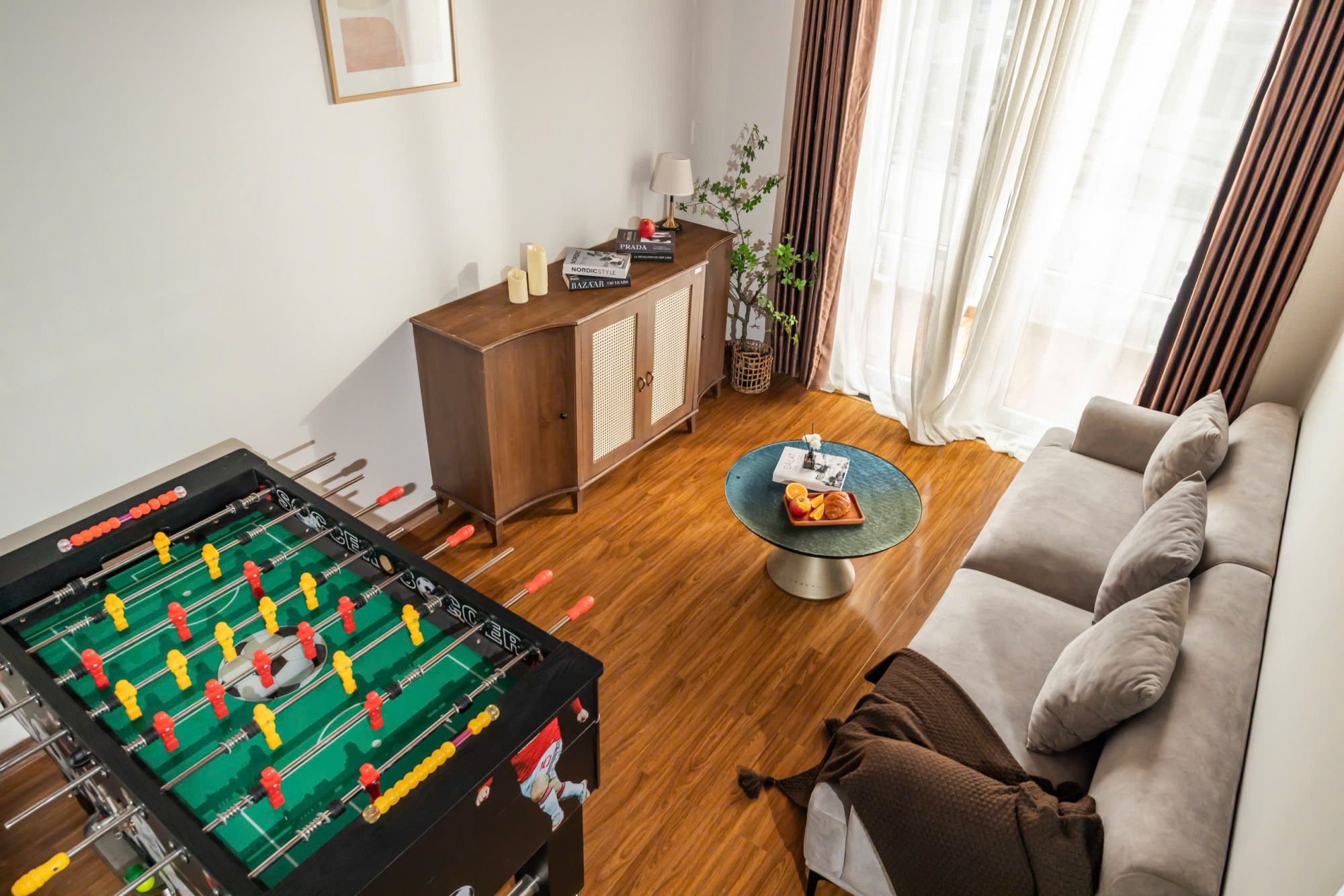 Không gian sinh hoạt chung tại Min House được bố trí nhiều khu vực giải trí, nổi bật với bàn bida và bàn bi lắc, mang đến những phút giây thư giãn và gắn kết đầy vui vẻ cho các thành viên. Đây là điểm cộng lớn giúp chuyến đi trở nên sôi động và đáng nhớ hơn, đặc biệt trong những buổi tối quây quần bên nhau.