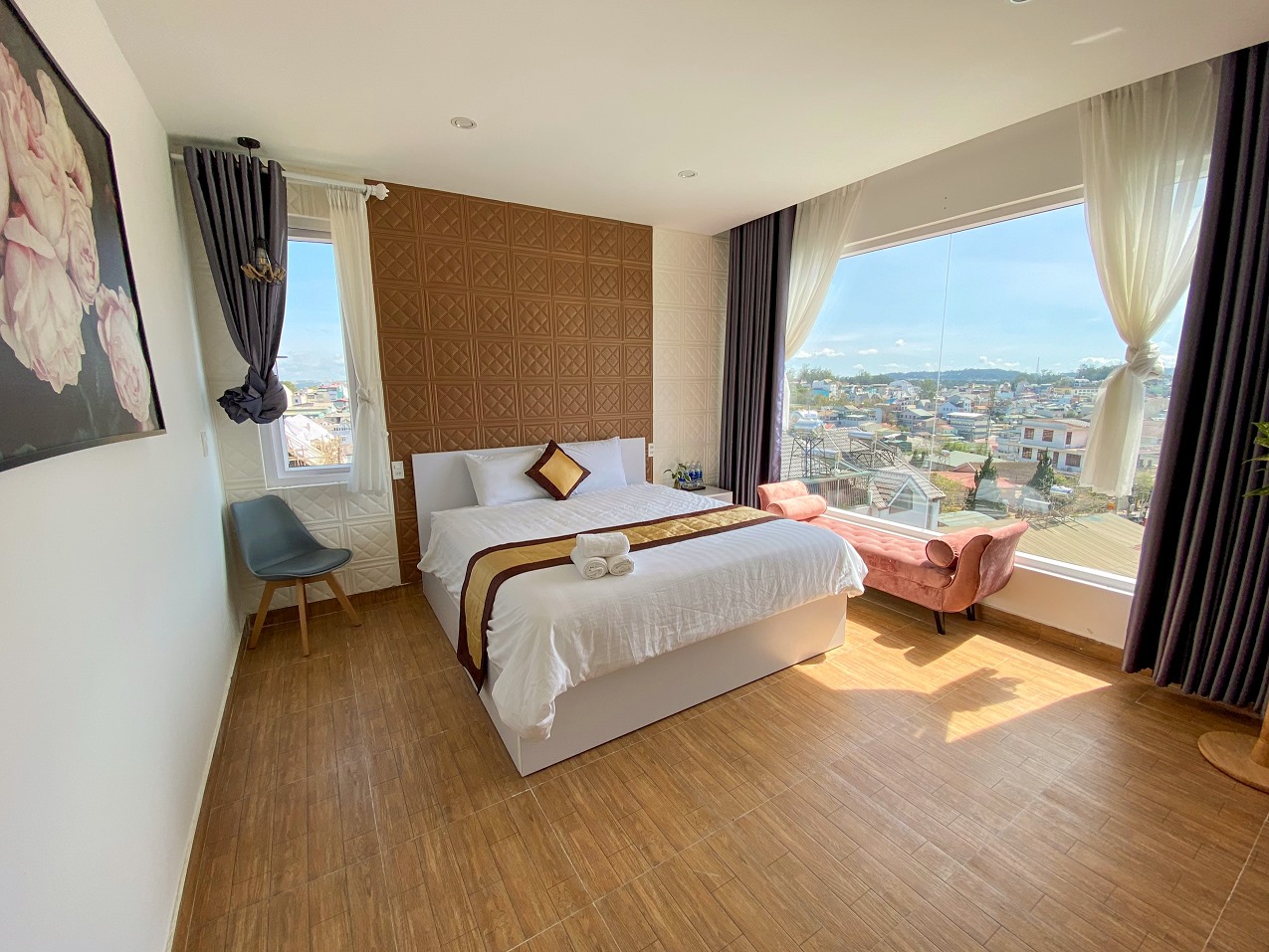 Căn villa được thiết kế theo phong cách ấm cúng – nhẹ nhàng, tận dụng tối đa ánh sáng tự nhiên và tầm nhìn thoáng đãng ra thung lũng, giúp bạn có thể ngắm trọn khoảnh khắc hoàng hôn lãng mạn ngay tại không gian lưu trú. Mỗi buổi chiều, cả căn nhà như được bao phủ bởi ánh nắng vàng dịu, mang lại cảm giác healing và rất dễ chịu.