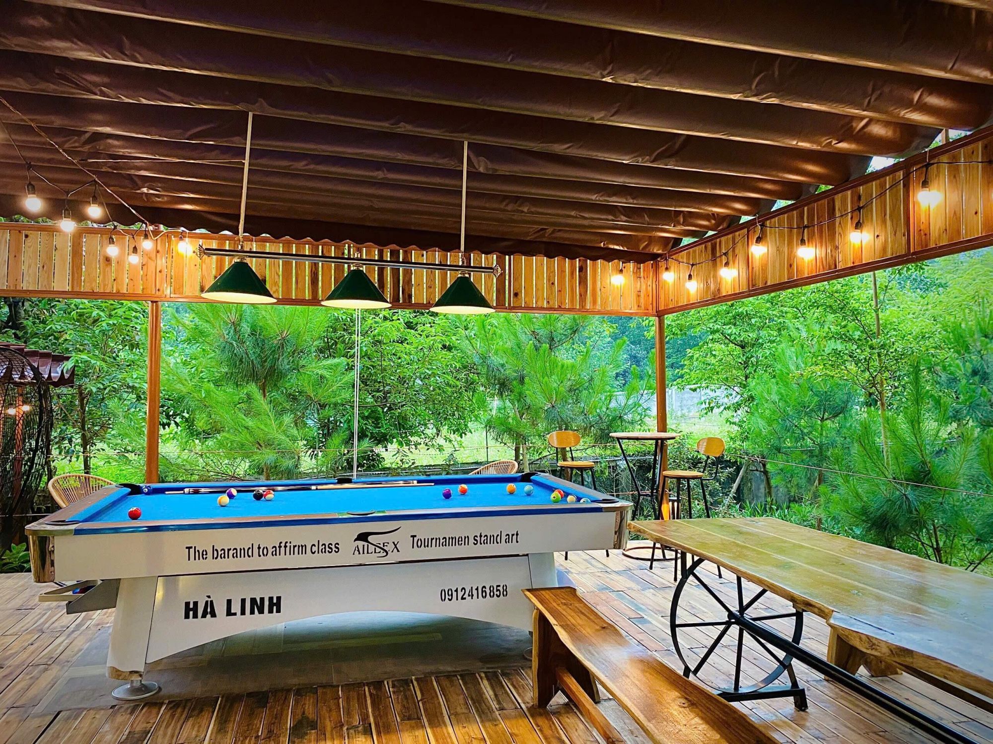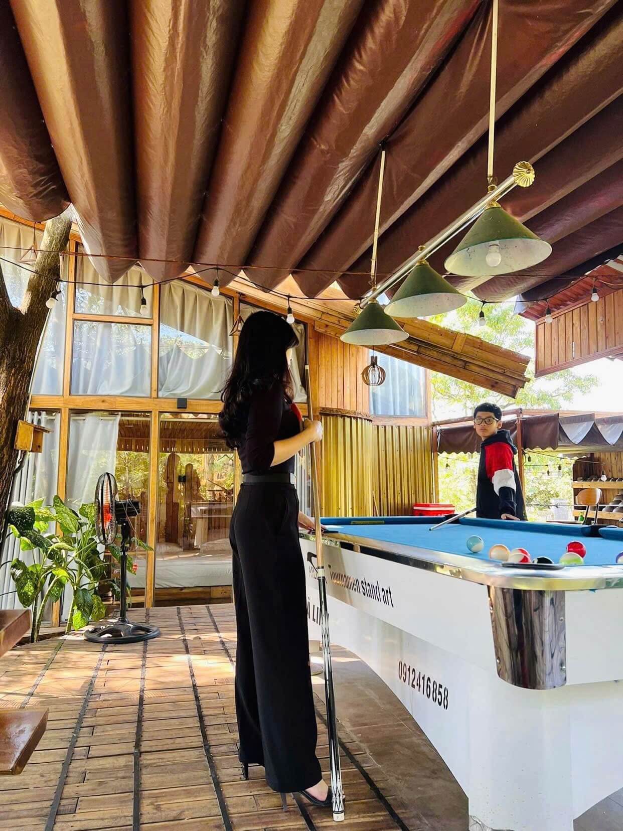 Khu chơi Bi-A riêng biệt với 2 bộ bàn ghế gỗ lớn ngoài trời, bộ bàn ghế chill uống cafe, 2 ghế bập bênh thư giãn, 1 xích đu lớn ngoài trời. Một khu vực giải trí cực kì chill tại BALI, gác lại mọi âu lo, vui chơi và trò truyện cùng bạn bè.