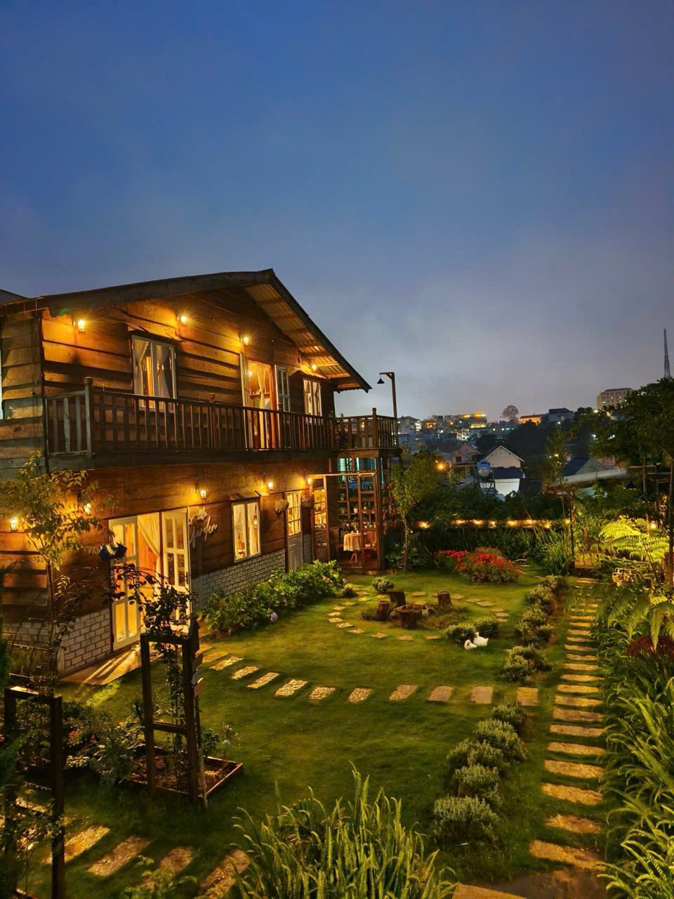 Thay vì bó hẹp trong một khung cảnh nhất định, Nhà Gỗ Nguyên căn Đà Lạt sở hữu tới ba view khác nhau: thành phố lung linh đèn về đêm, nhà thờ cổ mang sắc thái tĩnh lặng và những dãy núi xa cùng thung lũng nhà lồng rực sáng khi trời chuyển tối. Mỗi khung cửa mở ra một tâm trạng mới, khiến việc ngồi yên nhìn mây bay cũng trở thành một thú vui khó dứt ra.