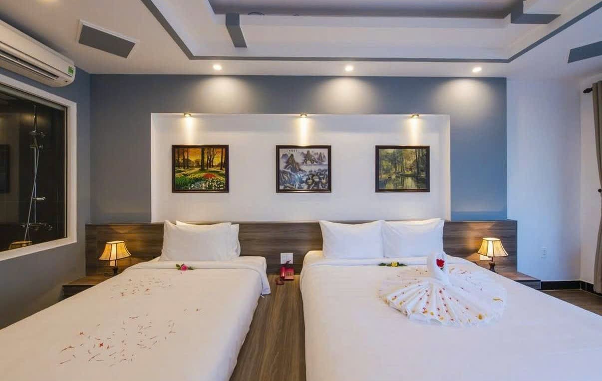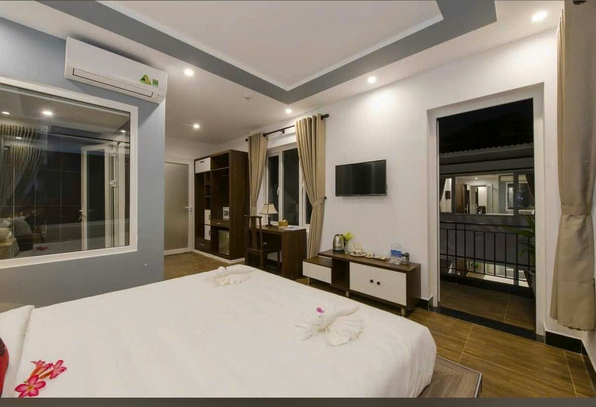 Phòng nghỉ hiện đại: Mỗi phòng đều được trang bị đầy đủ tiện nghi như điều hòa, TV màn hình phẳng, tủ lạnh, ấm đun nước và bàn làm việc, mang lại sự thoải mái tối đa.