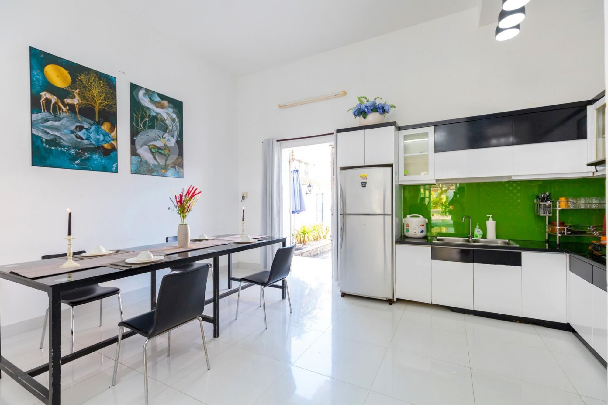 Nhà bếp của villa được trang bị đầy đủ dụng cụ nấu nướng hiện đại, giúp bạn tự do chế biến những món ăn ngon cho gia đình và bạn bè.