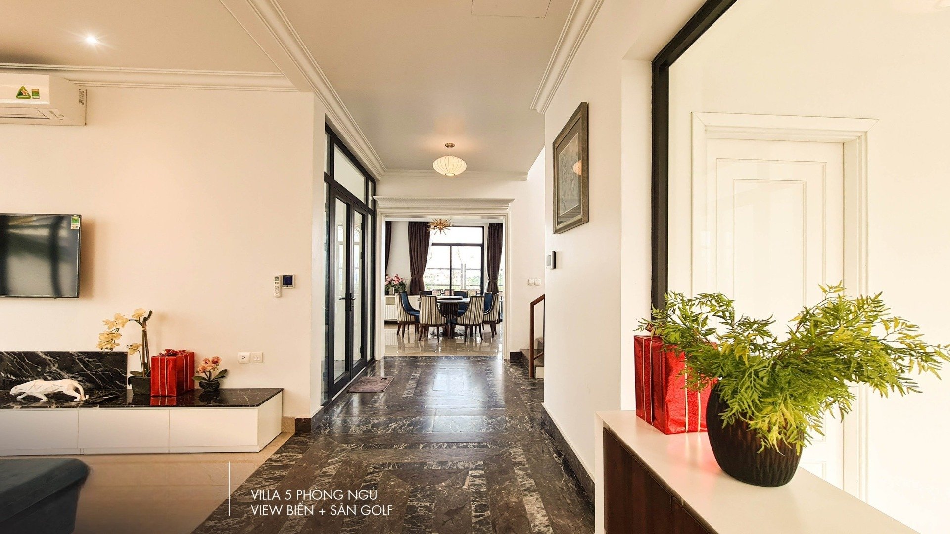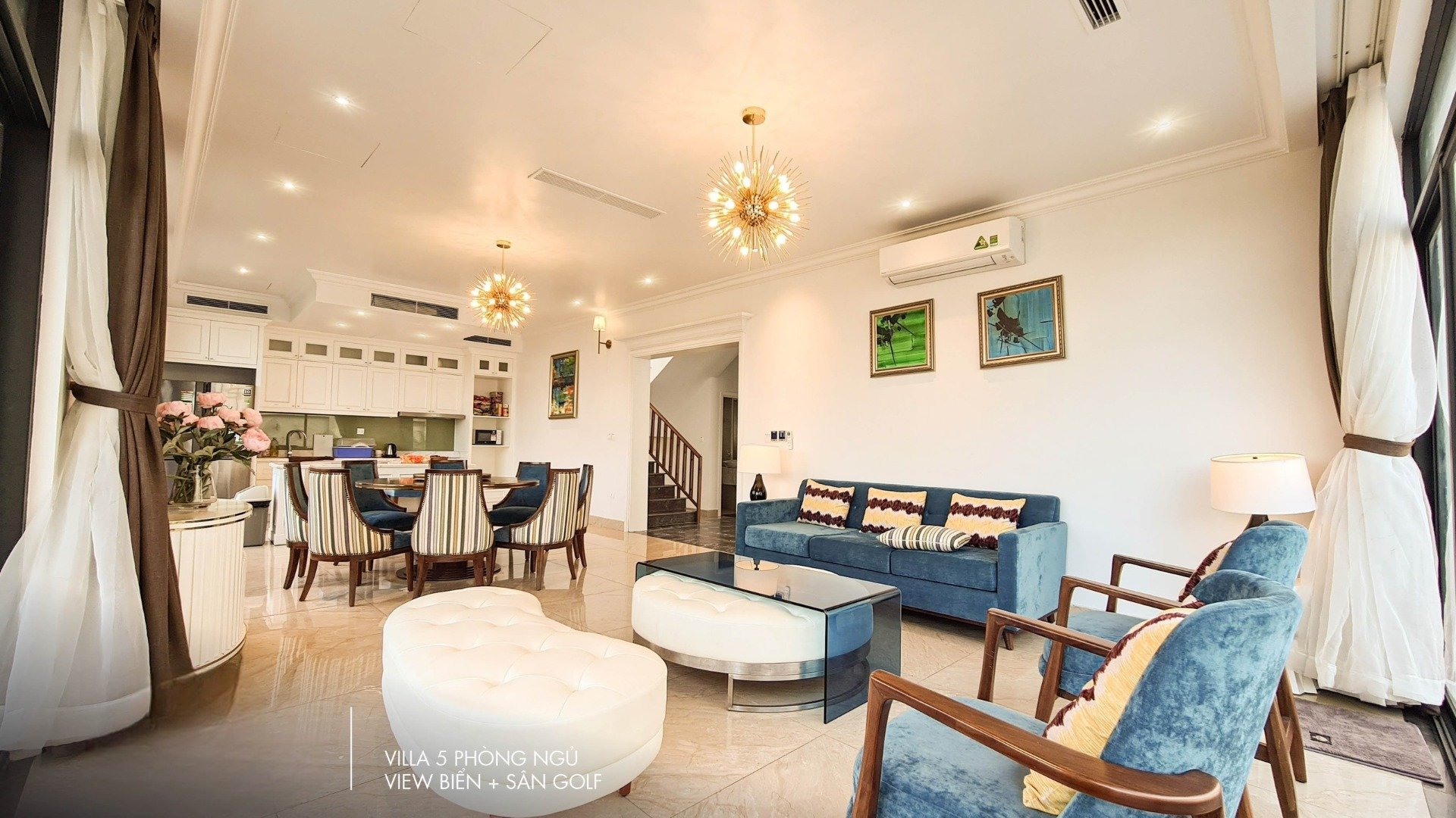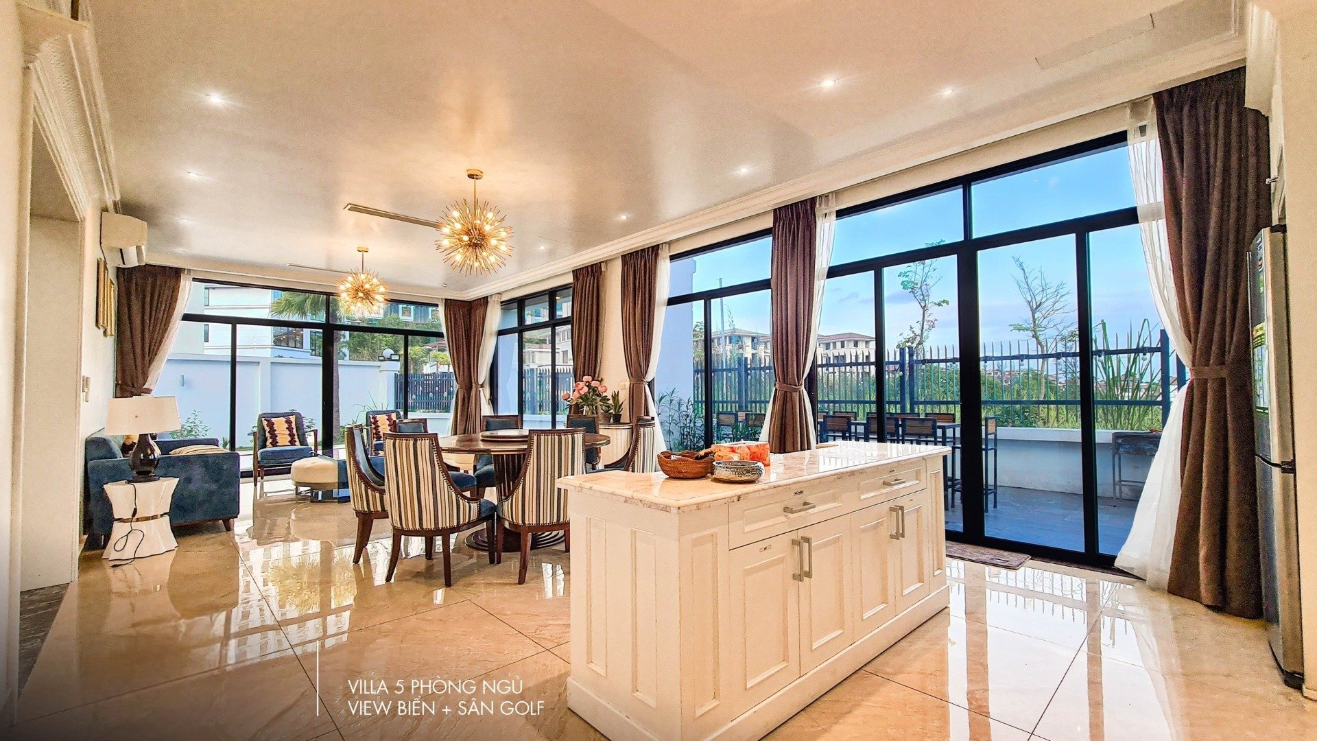 • View biển tuyệt đẹp: Biệt thự được thiết kế hiện đại với những mảng kính lớn, giúp đón trọn ánh sáng tự nhiên và gió biển trong lành. Mọi không gian đều được bố trí thông minh để mở rộng tầm nhìn, tạo sự kết nối hài hòa giữa nội thất sang trọng và cảnh quan thiên nhiên bên ngoài.