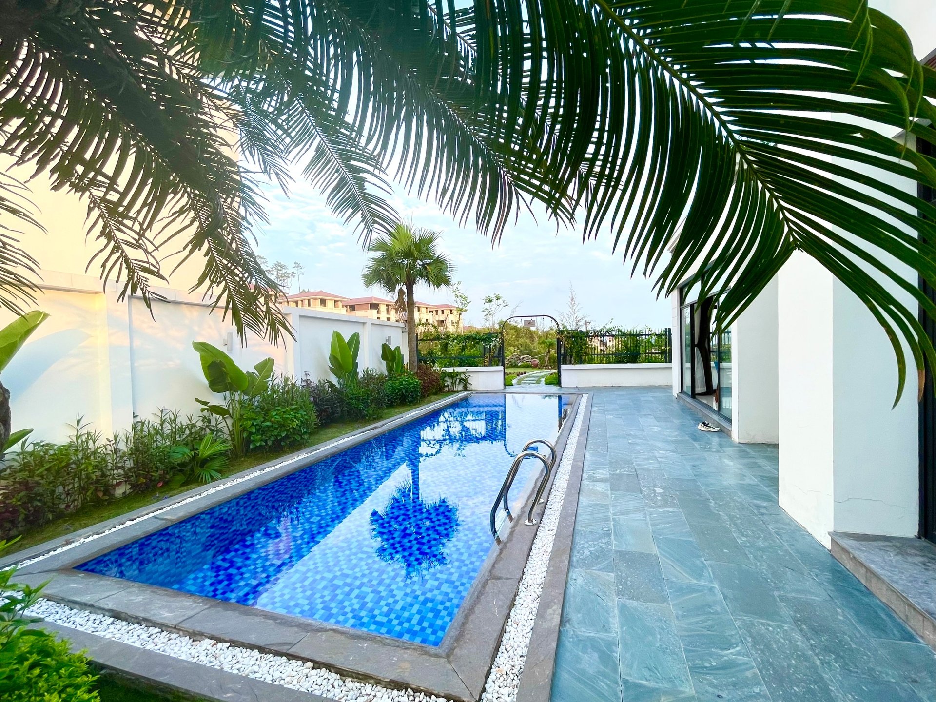 • Không gian xanh mát với bể bơi riêng: Khu sân vườn rộng rãi, được chăm chút tỉ mỉ cùng bể bơi riêng sang trọng tạo nên một không gian sống đậm chất nghỉ dưỡng. Đây là nơi lý tưởng để tổ chức tiệc nướng BBQ, bơi lội và thư giãn cùng bạn bè.