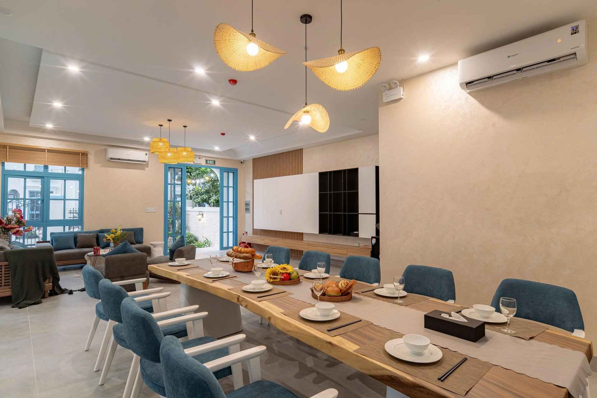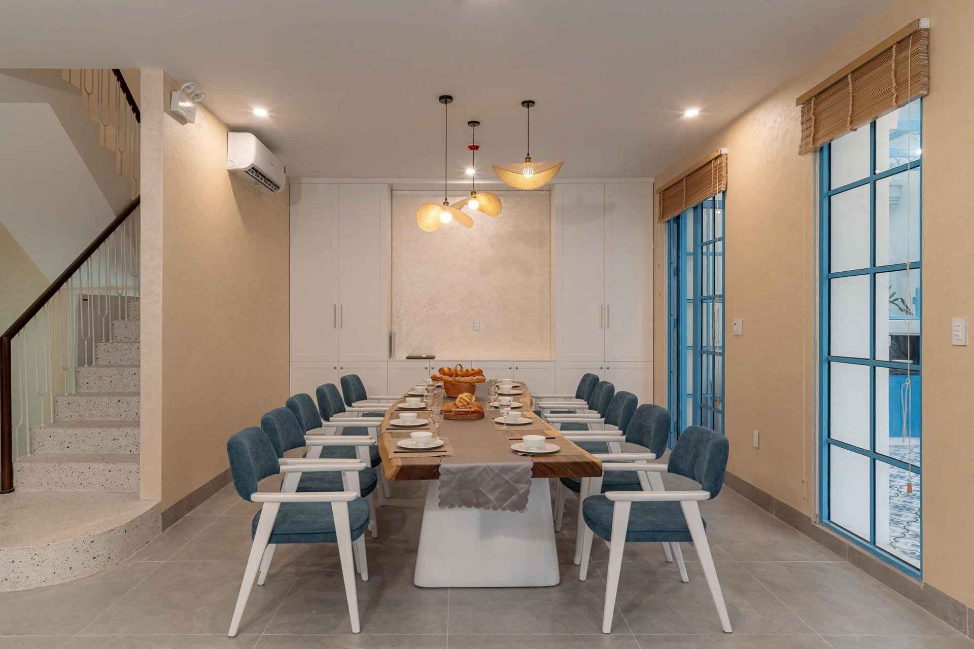 Thiết kế sang trọng: Villa mang phong cách Địa Trung Hải tinh tế kết hợp với nội thất hiện đại, nhiều cửa kính lớn đón ánh sáng & gió biển tự nhiên – tạo cảm giác thư giãn tuyệt đối.