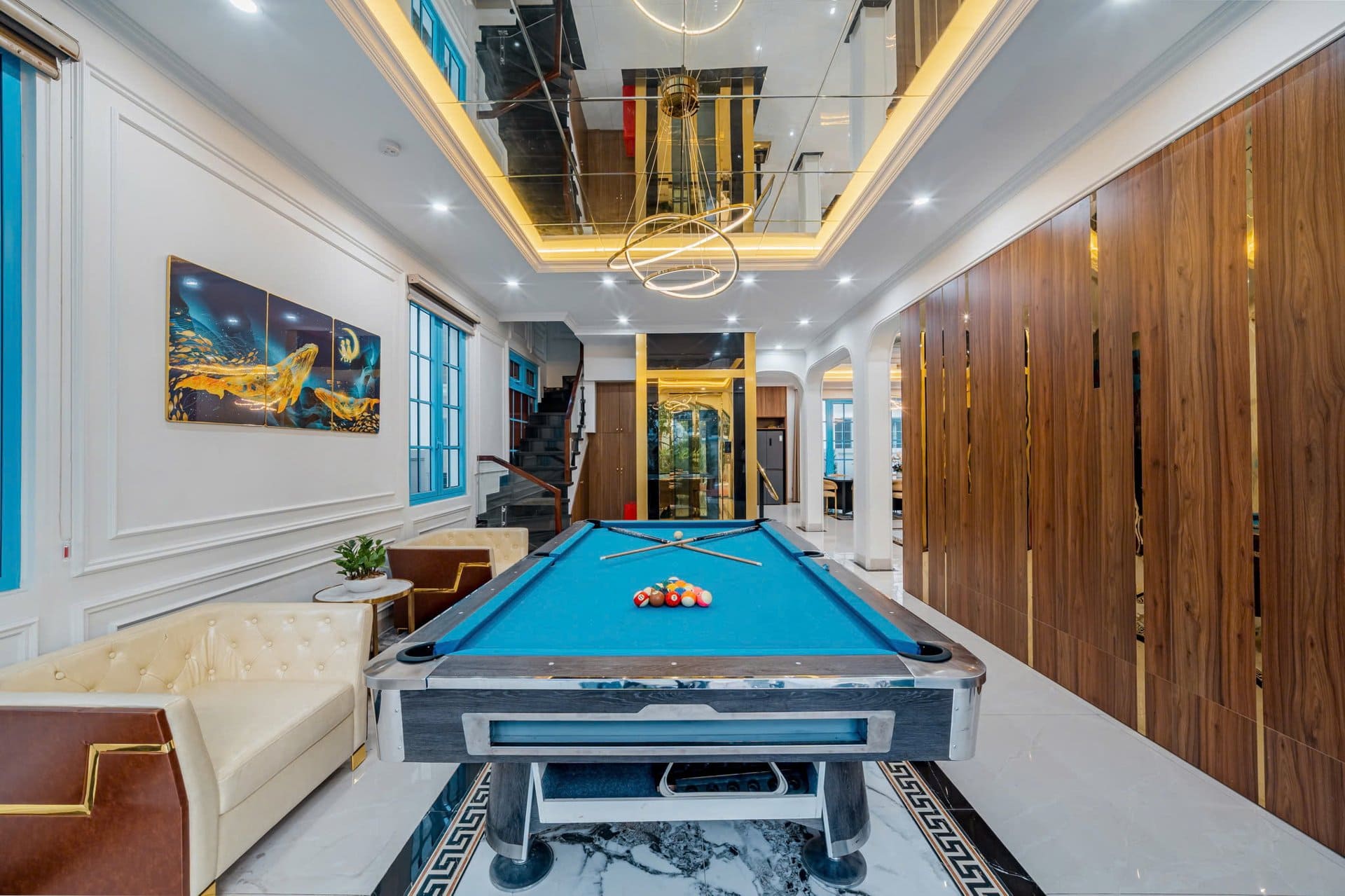 Thang máy hiện đại: Villa trang bị thang máy tiện lợi, giúp việc di chuyển dễ dàng hơn, đặc biệt đối với người lớn tuổi.