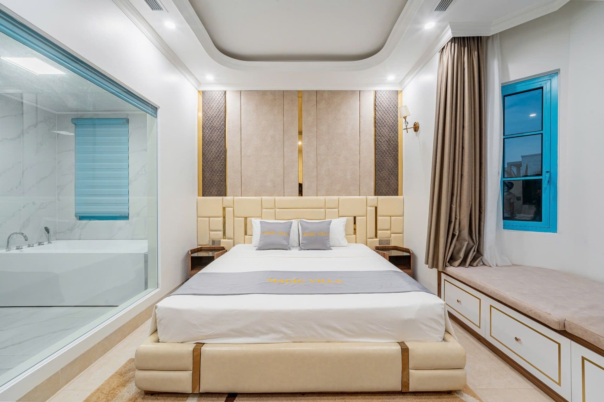 Thiết kế Đẳng cấp: Kiến trúc Địa Trung Hải sang trọng bên ngoài, kết hợp nội thất hiện đại bên trong. Nhiều cửa kính lớn giúp đón trọn ánh sáng và gió biển tự nhiên, tạo cảm giác thư giãn tuyệt đối.