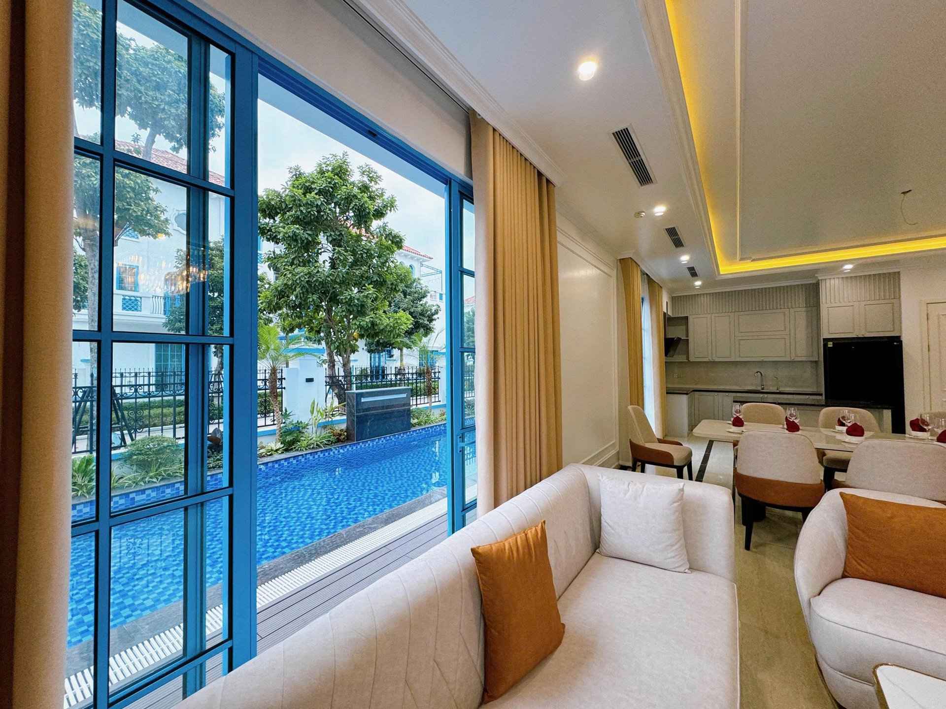 • Giải trí không giới hạn: Tận hưởng những khoảnh khắc vui vẻ với hệ thống karaoke tại phòng khách. Đắm mình trong làn nước mát lạnh của bể bơi riêng và tổ chức những bữa tiệc BBQ ngoài trời tại khu vườn xanh mát.