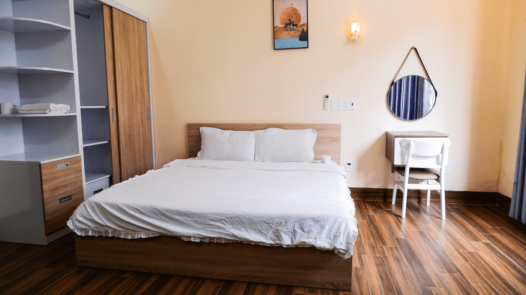 Với thiết kế nguyên căn gồm 5 phòng ngủ, Poseidon Villa có sức chứa lên đến 10-15 người, lý tưởng cho các nhóm gia đình lớn hoặc nhóm bạn đông người cùng nhau du lịch. Mỗi phòng đều được giữ gìn sạch sẽ, trang bị tiện nghi cơ bản, mang đến cảm giác ấm cúng và gần gũi. Một số phòng có cửa sổ lớn hướng ra đường, đón ánh sáng tự nhiên, trong khi các phòng còn lại vẫn đảm bảo sự thoải mái và riêng tư cho người ở.