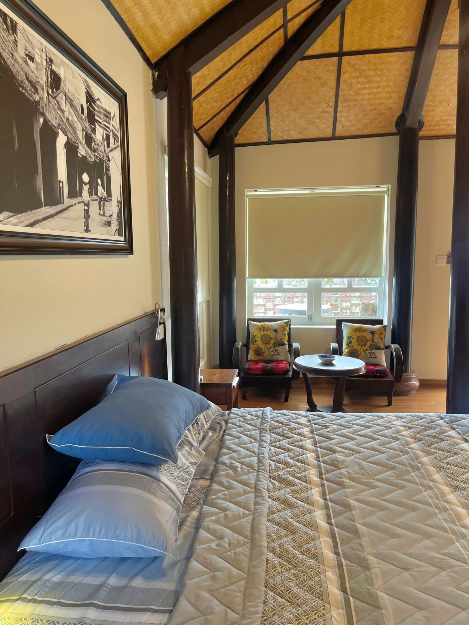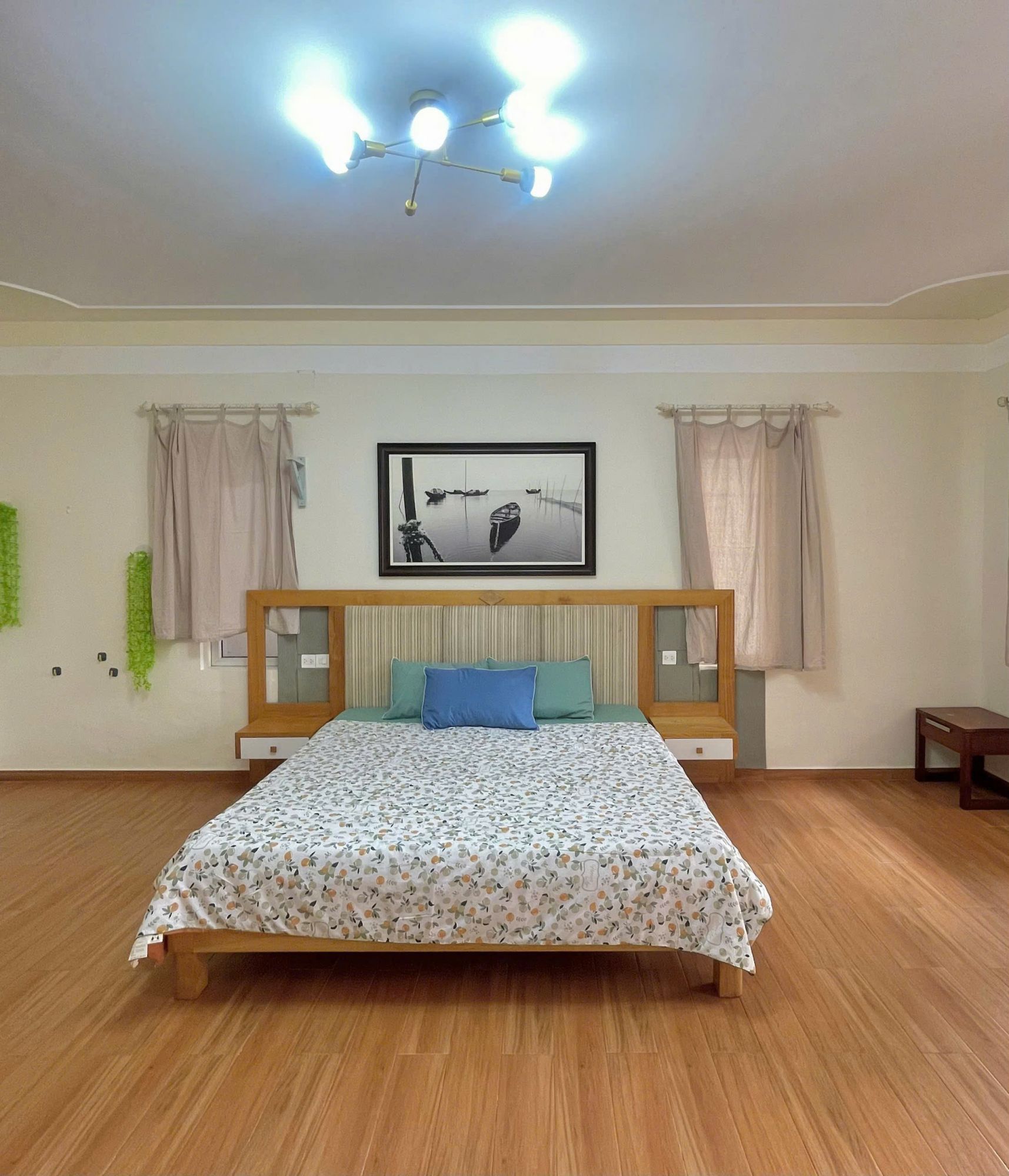 Phòng ngủ thiết kế thoáng mát, cửa sổ đón gió và ánh sáng tự nhiên, tạo cảm giác dễ chịu suốt thời gian lưu trú. Tổng thể không gian bên trong rộng rãi, đảm bảo sự thoải mái cho cả đoàn.