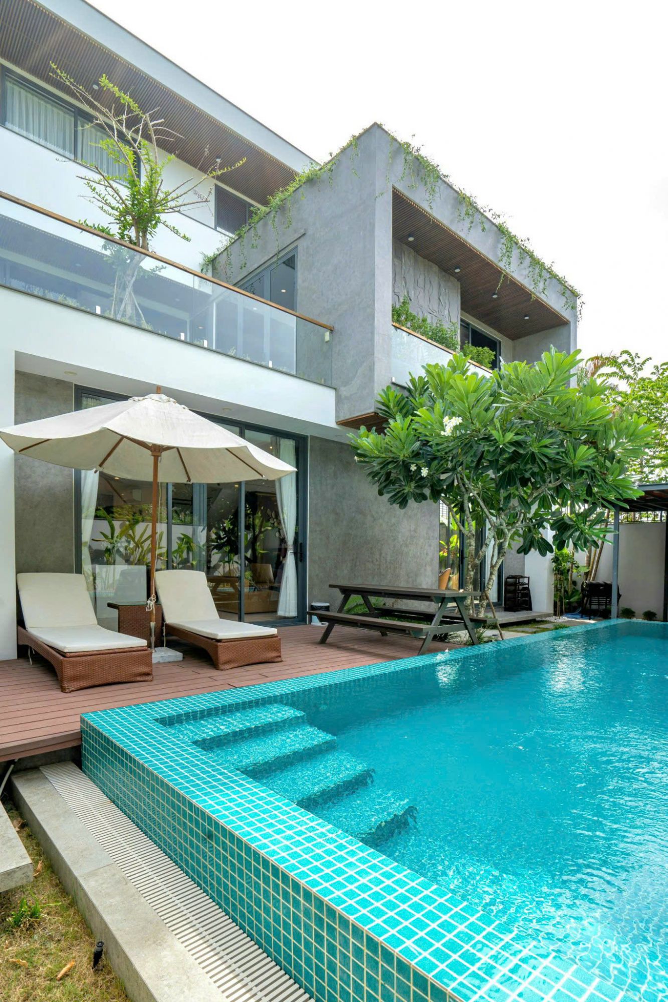 Villa có diện tích khuôn viên 300m², tổng diện tích sử dụng gần 700m², bao gồm 4 phòng ngủ rộng rãi, được bố trí hợp lý để đảm bảo sự riêng tư và thoải mái. Điểm nhấn nổi bật là hồ bơi ngoài trời diện tích 50m², sử dụng công nghệ muối điện phân lọc tràn hiện đại, mang lại làn nước trong sạch và an toàn cho sức khỏe.