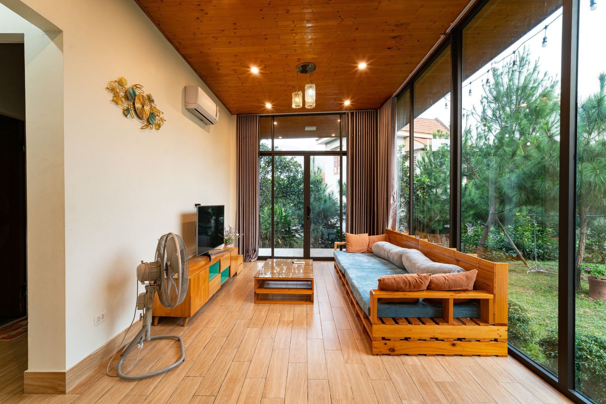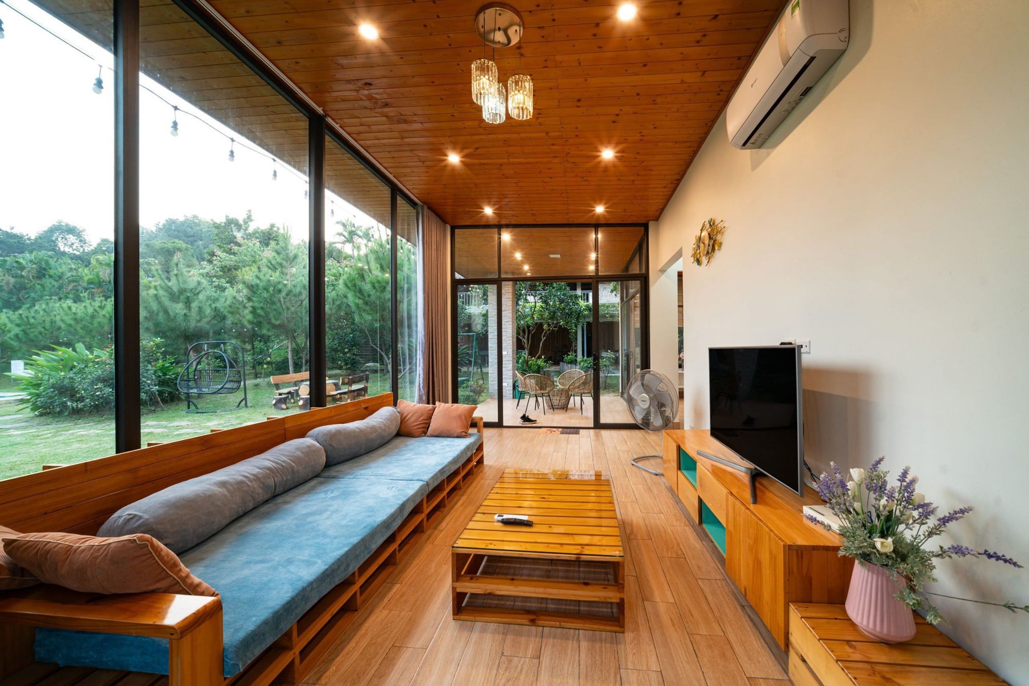 Phòng khách với tầm nhìn bể bơi: Thư giãn tại phòng khách có view trực tiếp ra bể bơi, nơi bạn có thể vừa trò chuyện, vừa ngắm nhìn cảnh sắc bên ngoài.