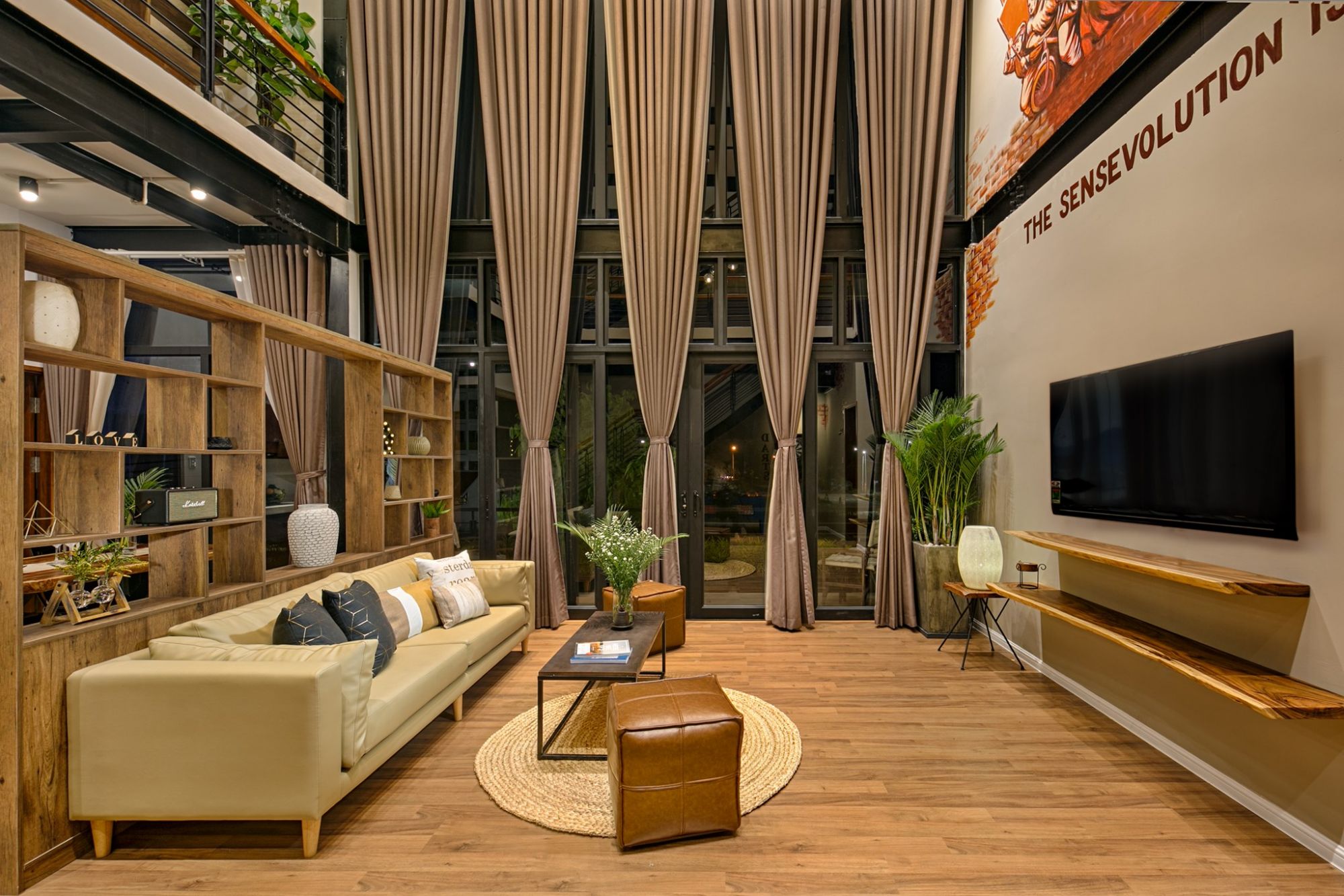 Ấn tượng đầu tiên tại Sense Villa là cảm giác rộng rãi ngay khi bước vào. Không gian được thiết kế theo phong cách hiện đại, ưu tiên trần cao và độ mở lớn, giúp ánh sáng tự nhiên lan tỏa khắp các khu vực. Các tầng kết nối với nhau mạch lạc, tạo nên dòng di chuyển liền mạch, không bị chia cắt hay gò bó.