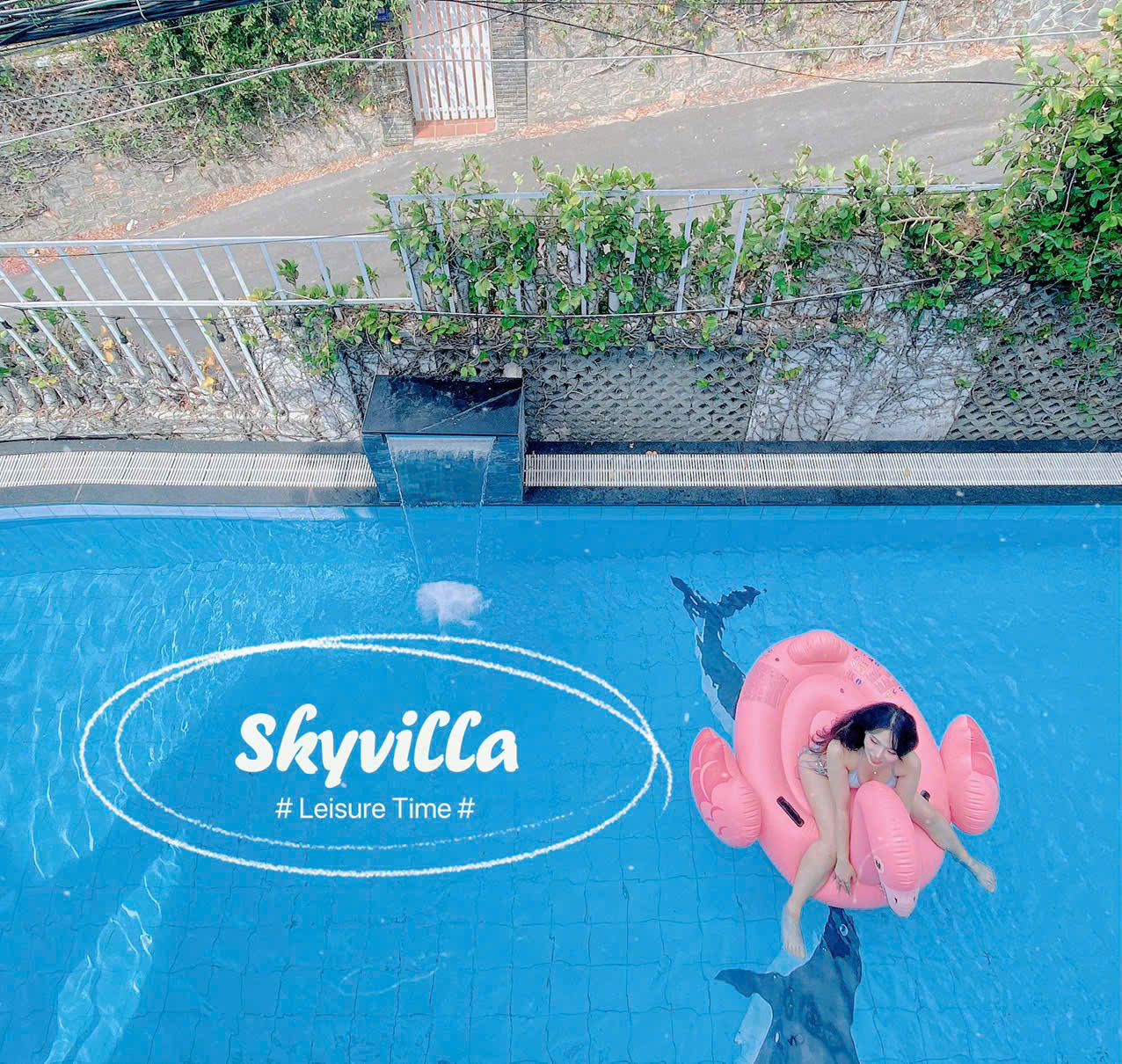 Hồ bơi 45m² tại Sky Villa 2 là điểm nhấn nổi bật với thác nước và chế độ sục massage thư giãn. Bên cạnh đó, villa còn trang bị dàn karaoke hiện đại, TV 65 inch có sẵn Netflix, bàn bida và không gian giải trí đỉnh cao – đáp ứng mọi nhu cầu thư giãn của du khách.