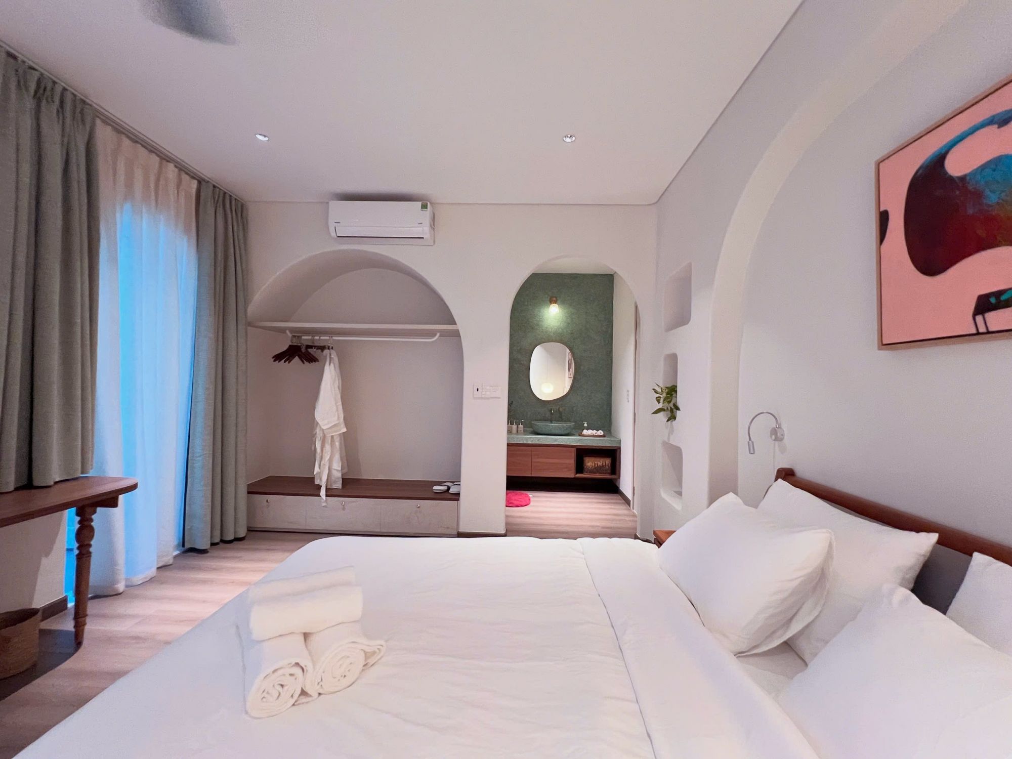 Villa được bố trí theo mô hình nguyên căn với 3 phòng ngủ thoáng mát, phù hợp cho gia đình nhỏ hoặc nhóm bạn. Mỗi phòng đều được sắp xếp gọn gàng, chú trọng ánh sáng tự nhiên và sự thông thoáng, mang lại cảm giác nghỉ ngơi đúng nghĩa. Tổng thể không gian tạo nên sự hài hòa, vừa đủ riêng tư nhưng vẫn giữ được sự gắn kết trong sinh hoạt chung.