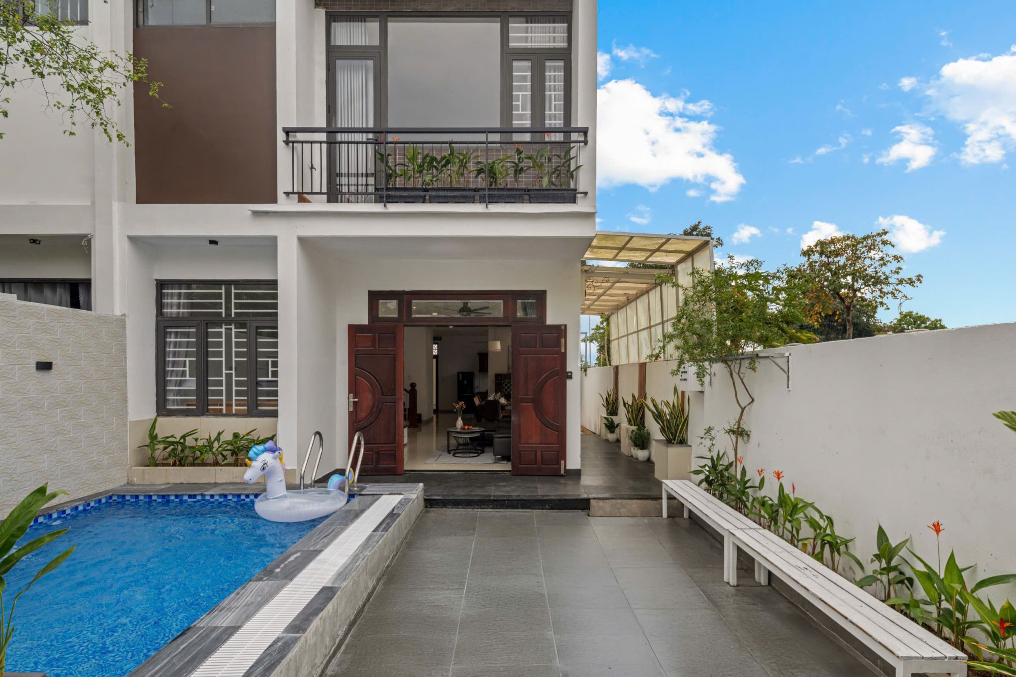 Suha Pool Villa là biệt thự 3 tầng mang vẻ đẹp yên bình, tọa lạc ngay bên bờ sông Hàn thơ mộng, nơi bạn có thể cảm nhận trọn vẹn nhịp sống chậm rãi và không khí trong lành đặc trưng của khu vực ven sông. Toàn bộ không gian villa được thiết kế với ba mặt thoáng, tận dụng tối đa ánh sáng tự nhiên và gió trời, mang lại cảm giác rộng rãi, thoáng đãng và dễ chịu trong từng khoảnh khắc nghỉ ngơi.