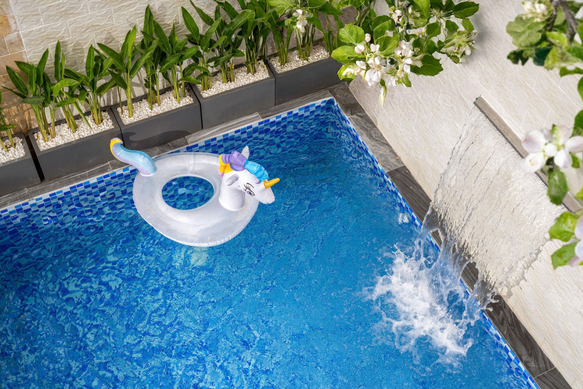 Villa sở hữu hồ bơi riêng với thác nước thư giãn, tạo nên một không gian nghỉ dưỡng riêng tư, lý tưởng để thả mình thư giãn sau những giờ vui chơi, khám phá thành phố. Khu bếp được trang bị đầy đủ dụng cụ nấu nướng, cho phép bạn thoải mái chuẩn bị những bữa ăn ấm cúng như đang ở chính ngôi nhà của mình, rất phù hợp cho các kỳ nghỉ cùng gia đình hoặc nhóm bạn.