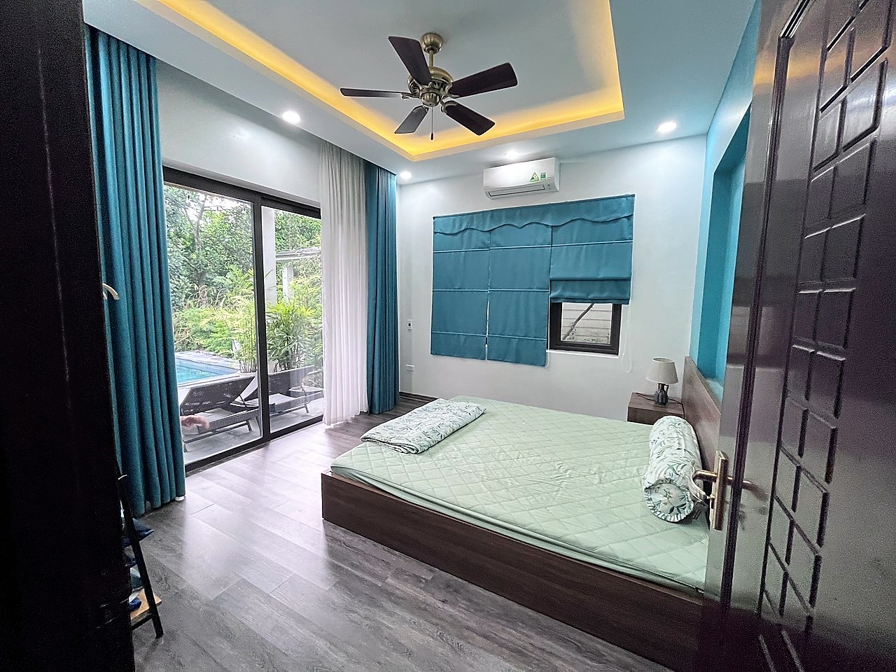 Giữa không gian xanh ngát và bầu không khí trong lành của Lương Sơn, Sun Village - Villa L26 mở ra một thế giới nghỉ dưỡng riêng tư và sang trọng. Với bể bơi riêng có hệ thống đèn đổi màu lung linh vào buổi tối, nơi đây đem lại cảm giác thư thái và chill đúng nghĩa, thích hợp cho những kỳ nghỉ vừa yên bình vừa rực rỡ sắc màu.