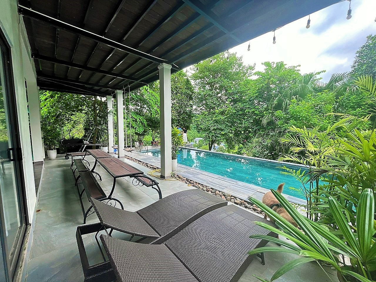 Sun Village - Villa L26 mang đến trải nghiệm ẩm thực đa dạng với bàn ăn trong nhà và ngoài trời được set up miễn phí. Ngoài ra, villa còn có bếp nướng BBQ ngoài trời, loa kéo kèm micro để cả nhóm cùng nhau hát hò, tạo nên những buổi tối quây quần khó quên. Ban công rộng rãi chính là nơi lý tưởng để ngắm cảnh, tổ chức tiệc hay đơn giản là tận hưởng buổi trà chiều giữa vườn hoa lá xanh mát.