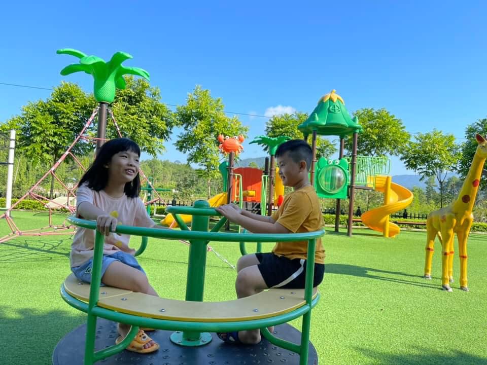 Điểm ấn tượng của Sun Village – Villa S101 chính là việc nằm trong một khu nghỉ dưỡng quy mô 12ha với hệ sinh thái phong phú. Hồ nước tự nhiên rộng 2ha, thung lũng hoa hồng rực rỡ, sân cỏ siêu rộng để tổ chức team building, đốt lửa trại hay tiệc đoàn lên tới 200 người – tất cả đều tạo nên một không gian kết nối và trải nghiệm đáng nhớ. Trẻ nhỏ có khu vui chơi ngoài trời, người lớn có thể câu cá thư giãn, trong khi cả gia đình cùng tận hưởng không gian xanh bao trùm cây cổ thụ lâu năm.